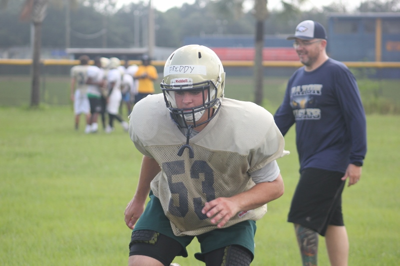 Since 2010, Paxon has been steadily improving each year on the football field. With a 5-5 record last year there’s hope for optimism this year as Coach Steve Brown continues to rebuild the program. With rebuilding comes innovation, and Brown is already finding unique ways to stay ahead of the game. “We go in the morning all summer to keep them on the same schedule. The other reason we do it is we know there’s afternoon showers, and we’re not a neighborhood school, so it’s hard enough to get them here one time, let alone trying to get them here late in the afternoon”. Coach knows that familiarity and consistency are very important parts to the make-up of a winning team.