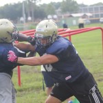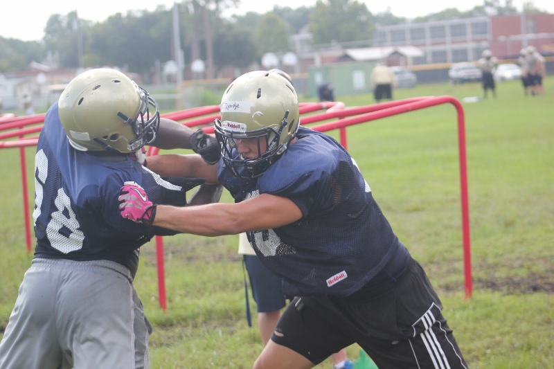 Speaking of the team’s make up, Coach Brown predicts speed and quickness. ” We lost a lot of size but we’re going to be a lot faster and stronger”. The speed will know doubt come from key players like Akari Boss (JR) , and the 6’3ft, 180lb Jacob Finn ( Sr). Another key returning starter is (SR) Garrett Evins 6’3ft 270lbs who will move people against their will. It’s an offense that creates a lot of excitement for the coach. ” I have a lot of three year starters; On offense we’re going to be in pretty good shape. On defense we lost nine starters but we got three D-ends that are returning that are all three year letter winners we’ve got a mixture of talent We’re going to be very junior/senior heavy this year”.