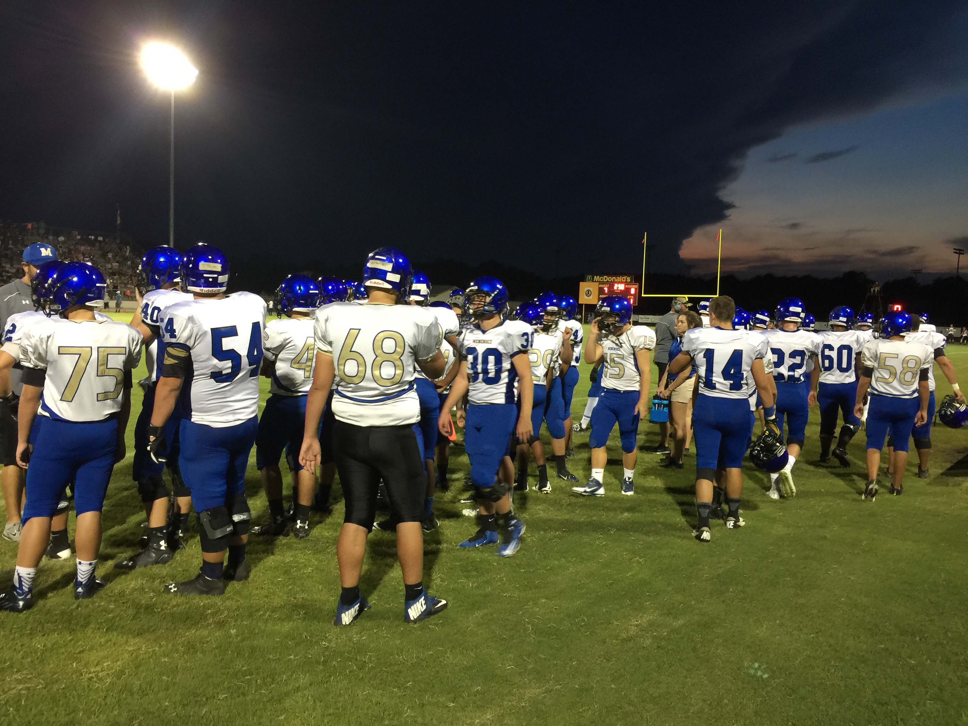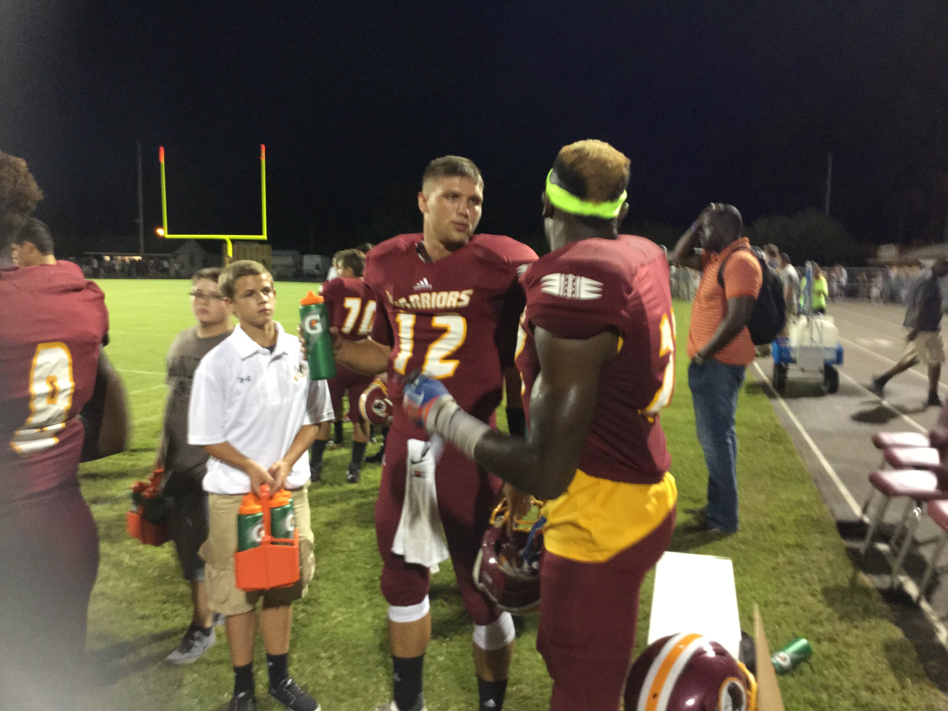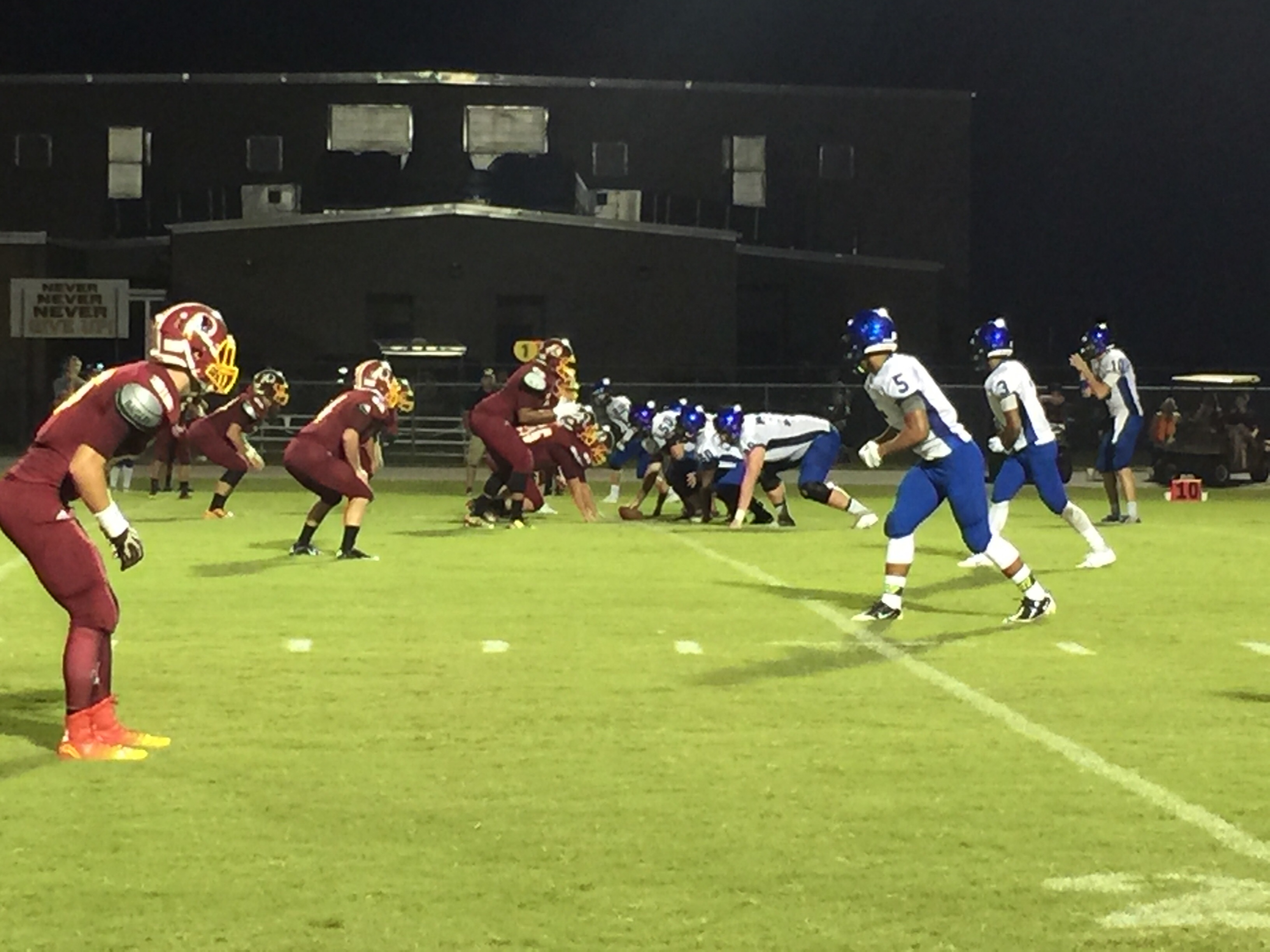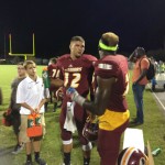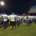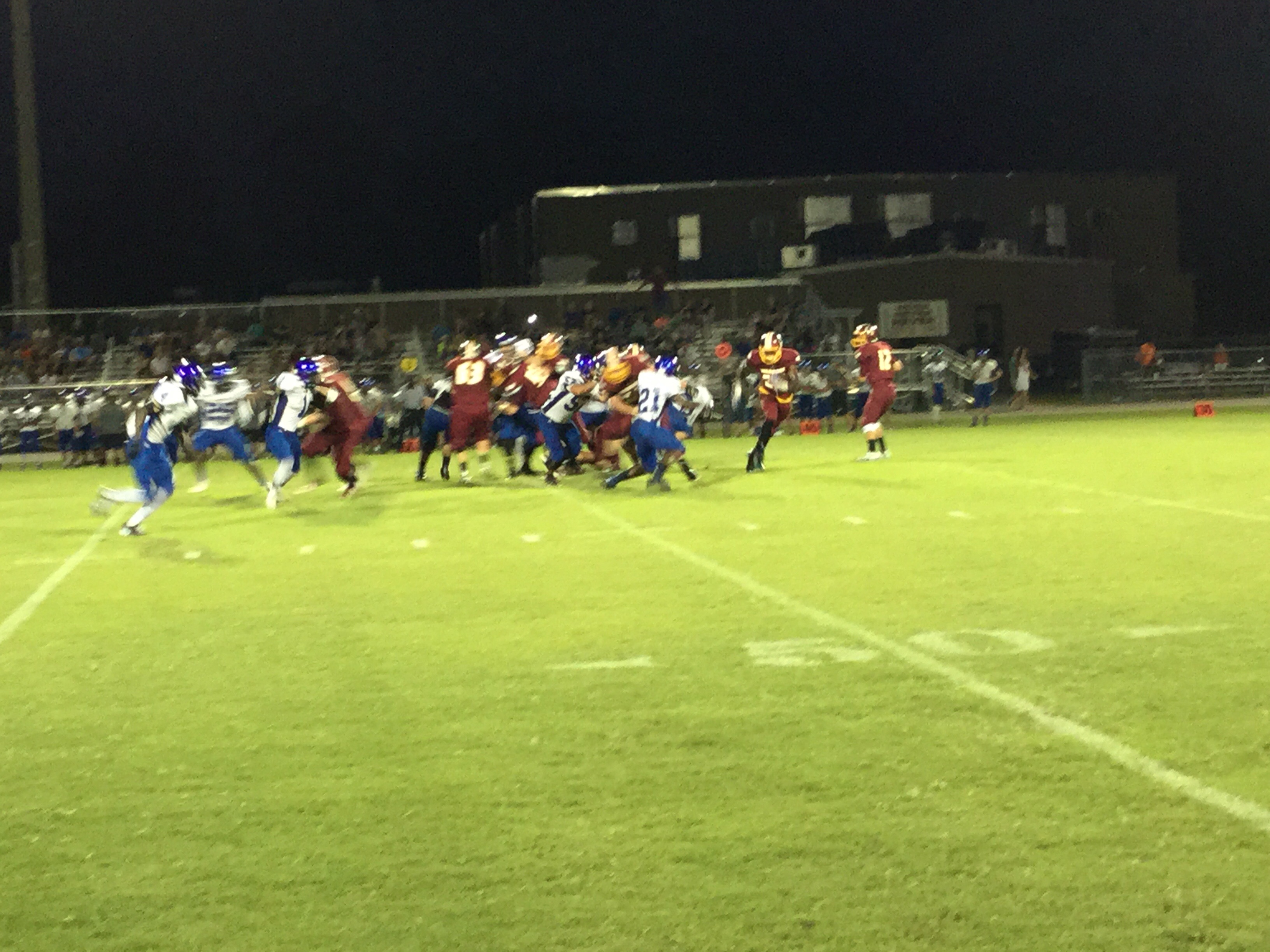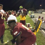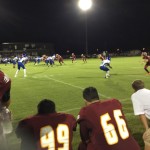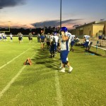 Callahan– Jared Caldwell(#8) , running back for Menendez scampered for a forty yard touchdown to break the ice in their preseason contest versus West Nassau Saturday night. There were several nice runs from West Nassau runningback #22 Devion Dubose that almost broke through the middle. But the highlight of the first half was QB #12 Bryce Jenkins connecting with #10 WR Quinn Coxwell on a deep bomb in the second quarter to pull the Warriors within one of the Falcons. That’s all the scoring there would be in the first half as Menendez led 7-6 over West Nassau.