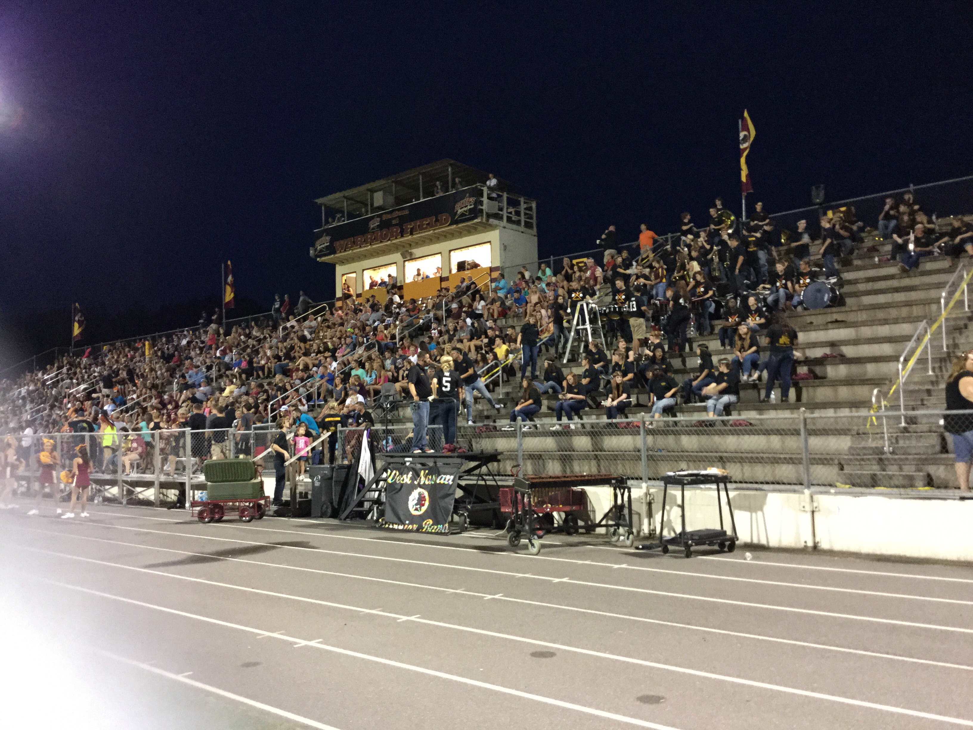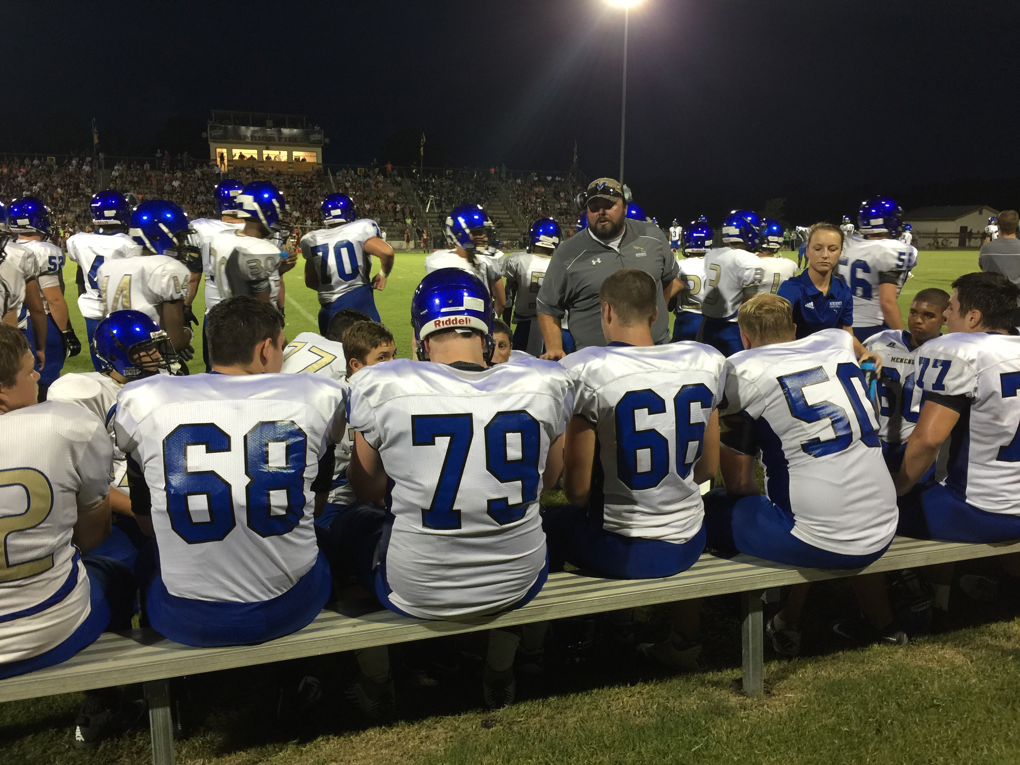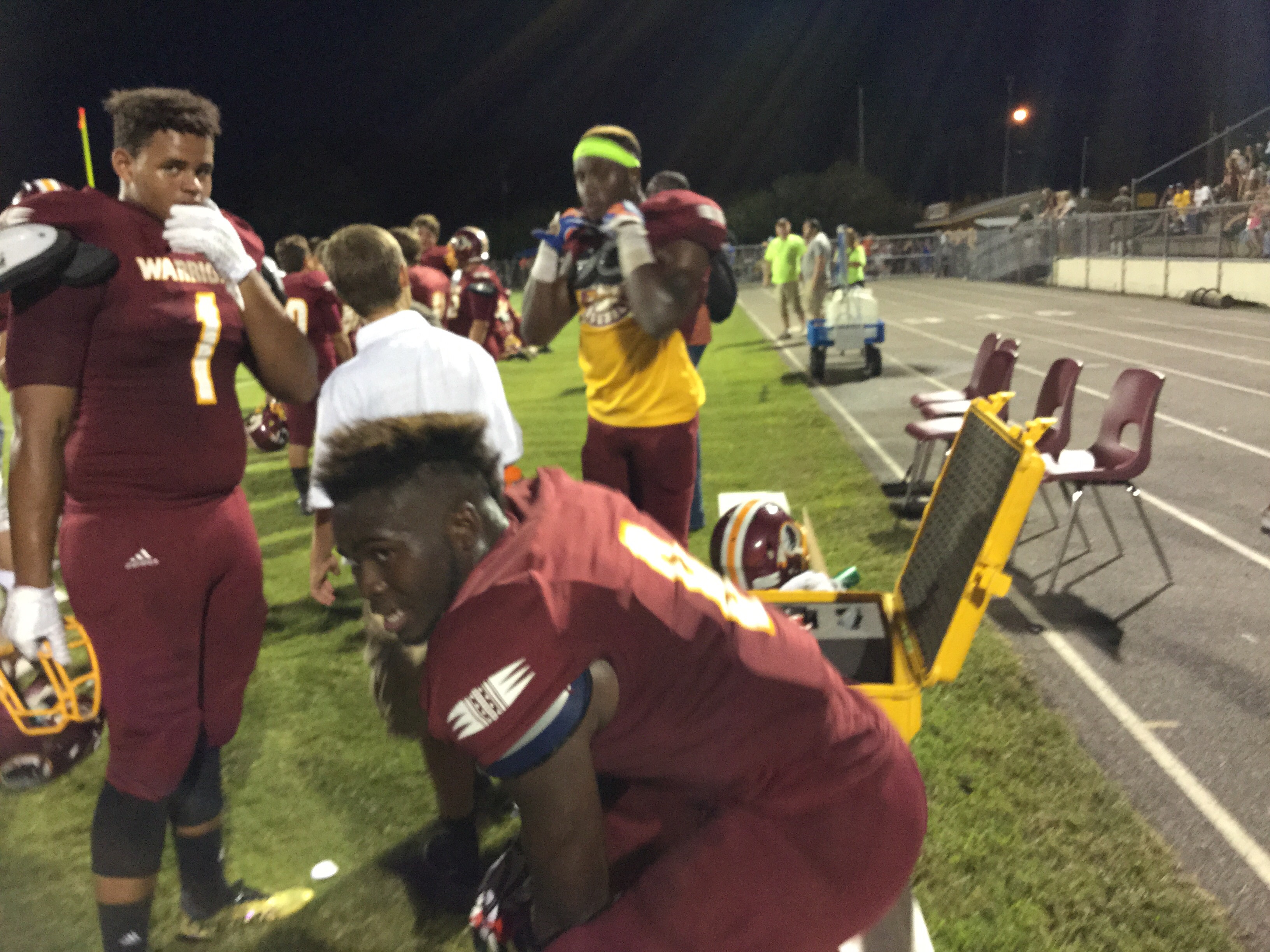 Callahan– Jared Caldwell(#8) , running back for Menendez scampered for a forty yard touchdown to break the ice in their preseason contest versus West Nassau Saturday night. There were several nice runs from West Nassau runningback #22 Devion Dubose that almost broke through the middle. But the highlight of the first half was QB #12 Bryce Jenkins connecting with #10 WR Quinn Coxwell on a deep bomb in the second quarter to pull the Warriors within one of the Falcons. That’s all the scoring there would be in the first half as Menendez led 7-6 over West Nassau.