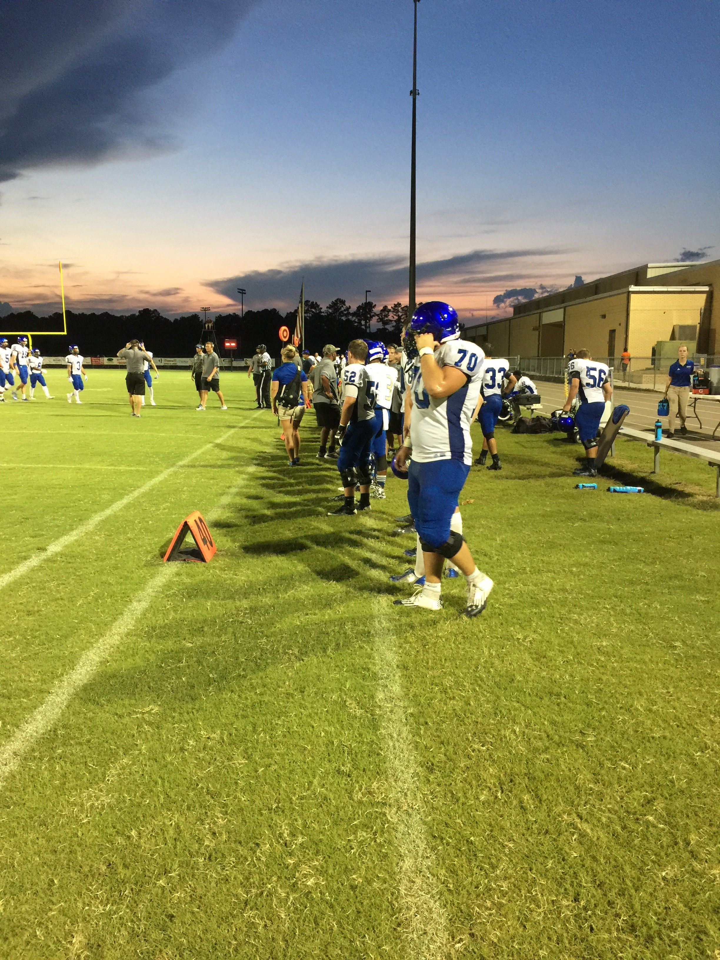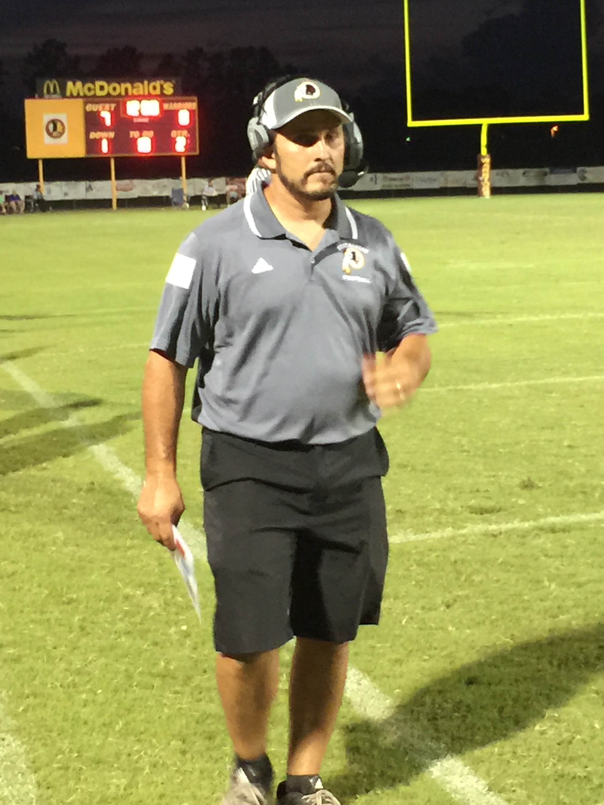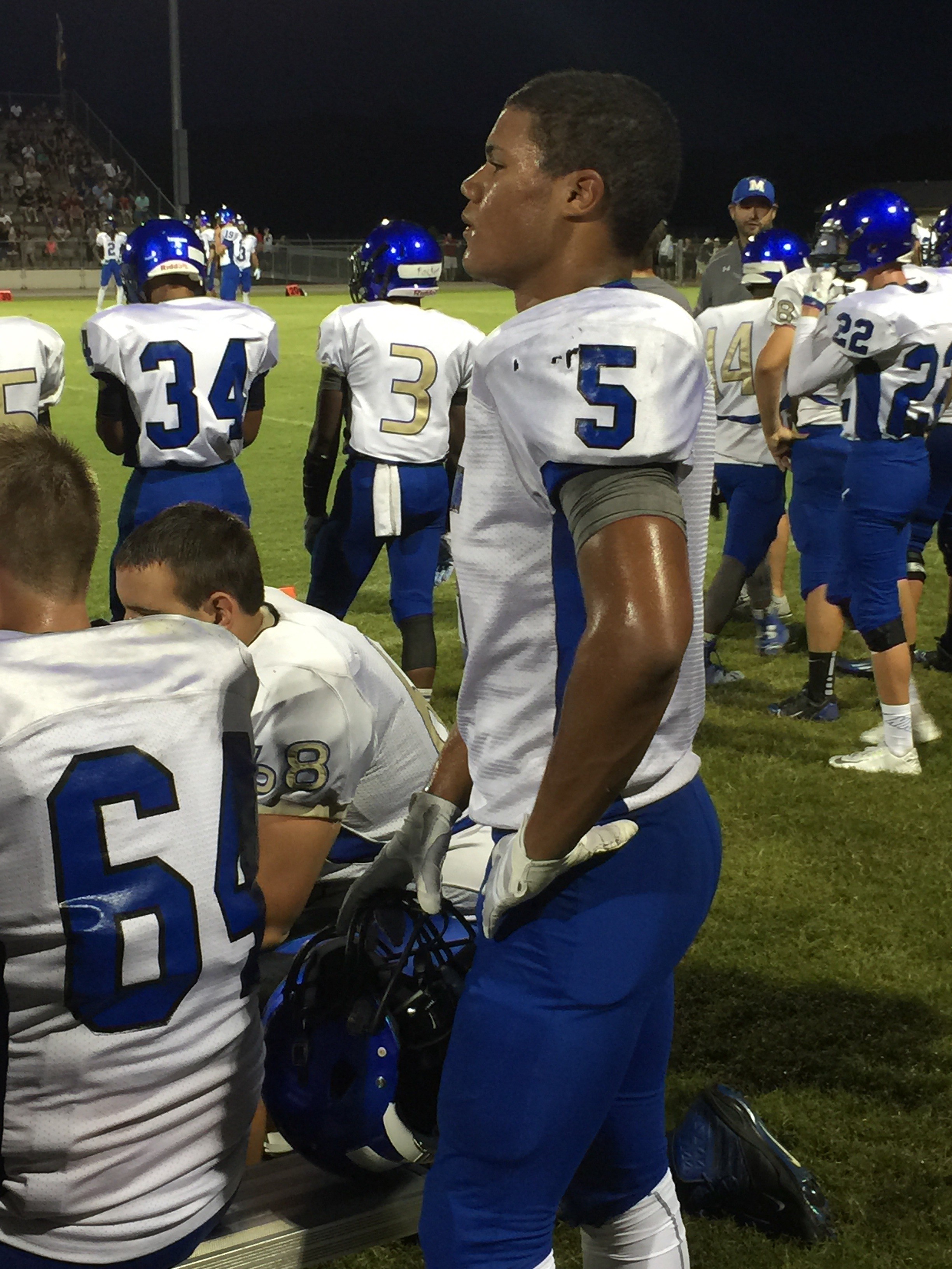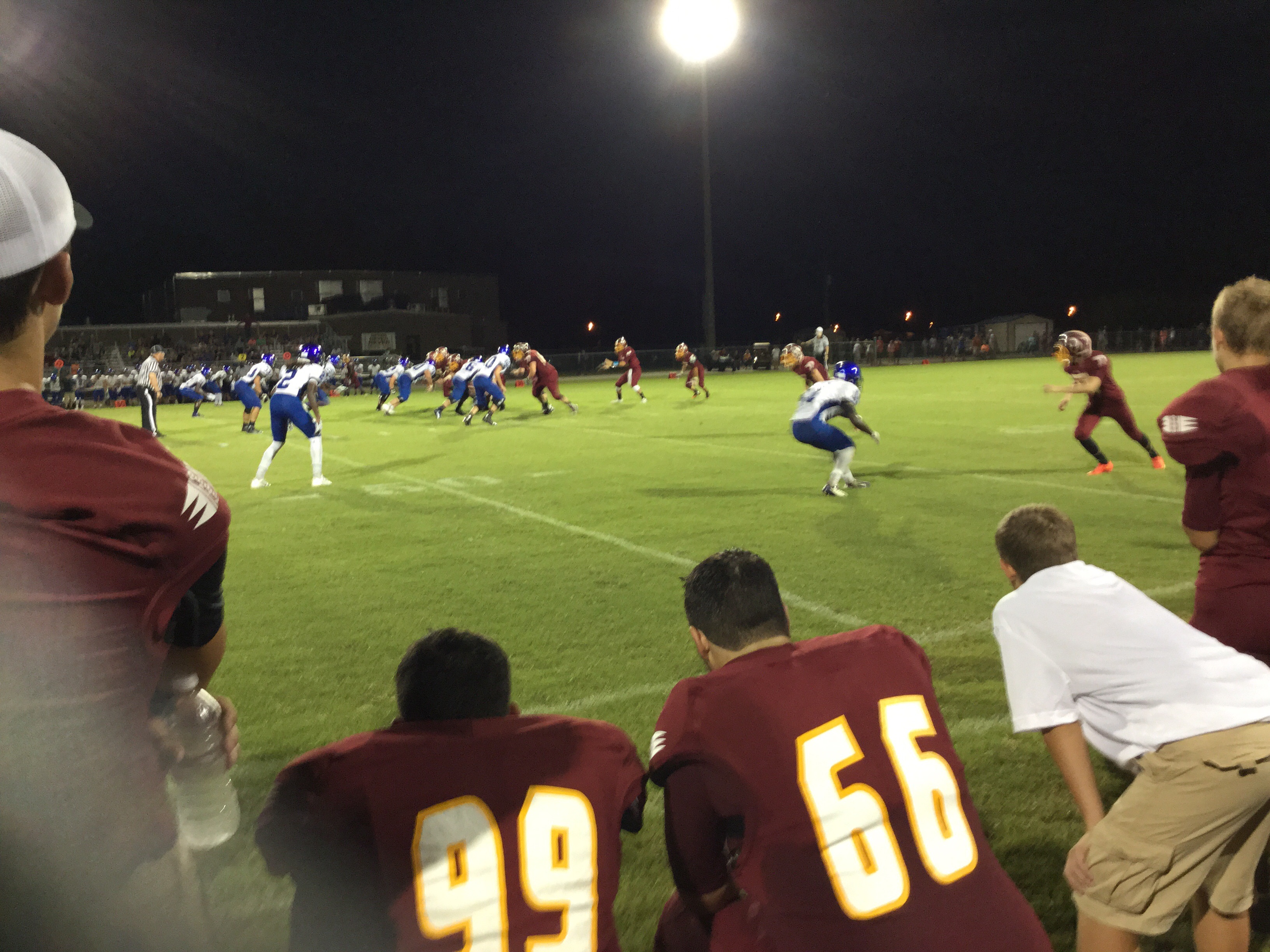 Callahan– Jared Caldwell(#8) , running back for Menendez scampered for a forty yard touchdown to break the ice in their preseason contest versus West Nassau Saturday night. There were several nice runs from West Nassau runningback #22 Devion Dubose that almost broke through the middle. But the highlight of the first half was QB #12 Bryce Jenkins connecting with #10 WR Quinn Coxwell on a deep bomb in the second quarter to pull the Warriors within one of the Falcons. That’s all the scoring there would be in the first half as Menendez led 7-6 over West Nassau.