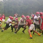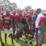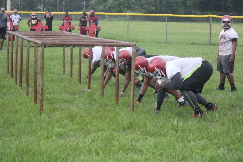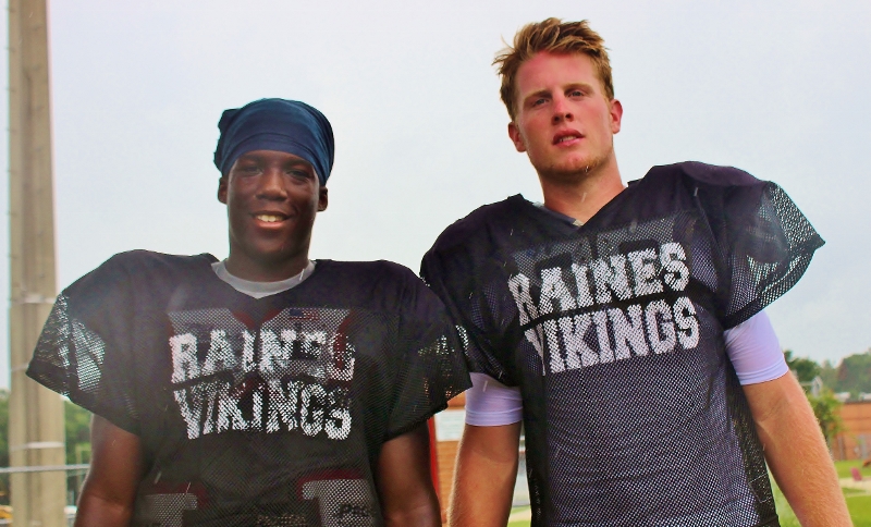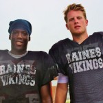 Raines Jv head Coach Lecount is tasked with getting the new young Viks acclimated into the ways of being a true Raines Viking. Lecount said his JV program is key to the future success of the Vikings as nearly all Raines varsity starters once played for him. Sophomores Lb Cameron Mackey and CB Shamari Jackson may see time on varsity this year, Mackey is a leader, solid tackler, can rush the qb very well and has been in the system since last year, Jackson is quick, has good hips and he’s also a good tackler. Lecount said he is excited to see his freshman class take the field this year, running backs Javon Bonsell, Brandon Marshall and Aric Horne are competing very hard. Bonsell is a strong physical tuff rb that can do it all. Marshall has good vision, can run with finesse or power and can make things happen, all 3 may play defense as well. Qb Jakari Gadson has a strong arm, accurate with the ball,and can provide big running plays as well. Matt Drayton and Gadson may hook up for quite a few tds this season. Coach said he is also having fun teaching the game off football to Aric Horne who is a athlete that could play rb,wr,and a few spots on defense and also could be called up before years end.