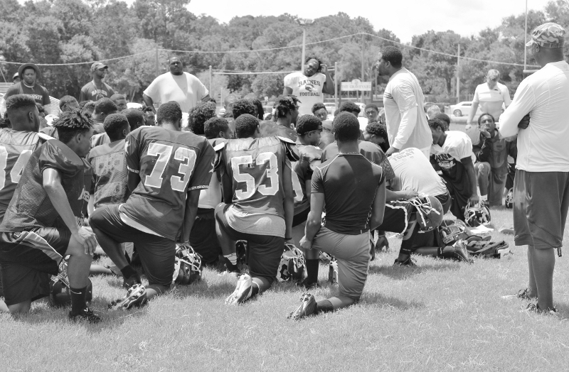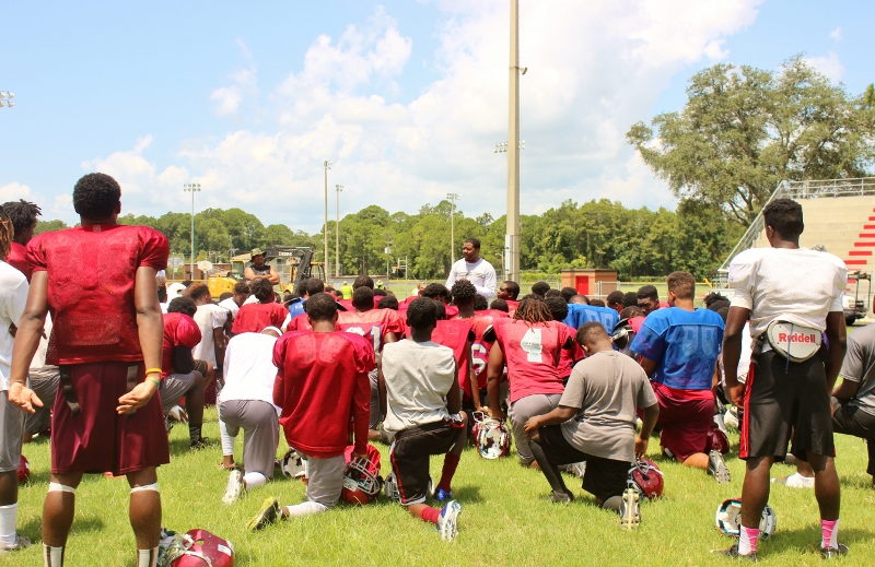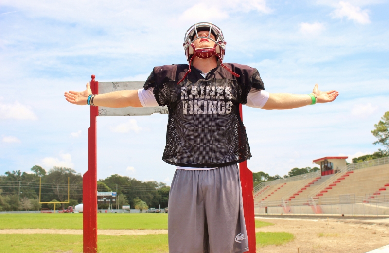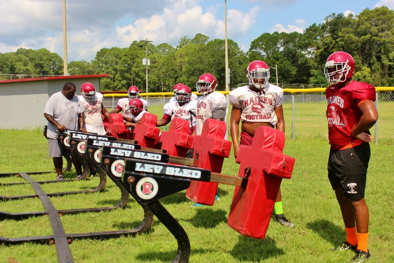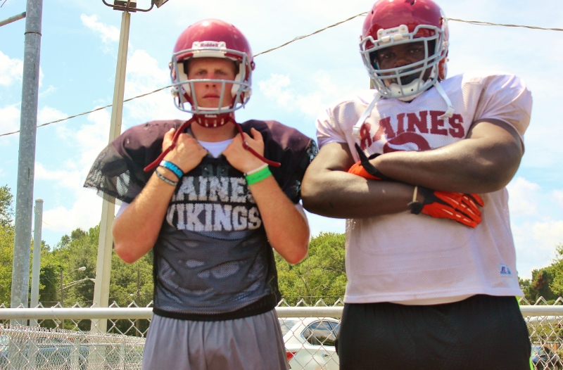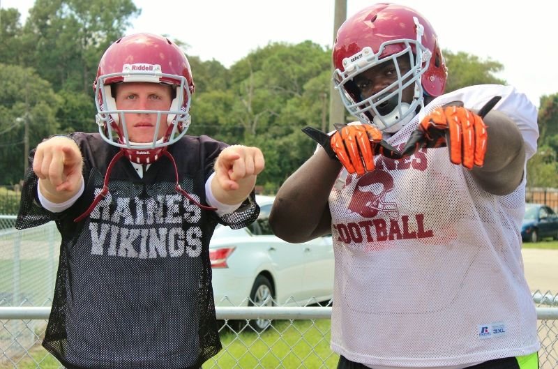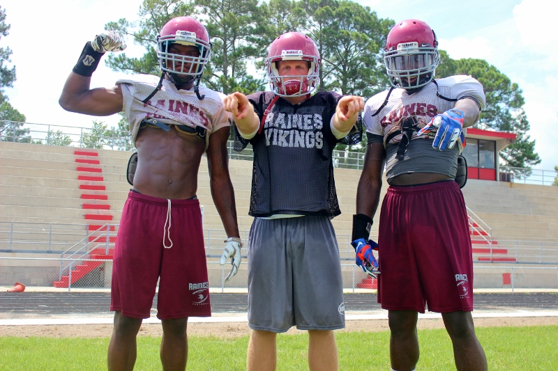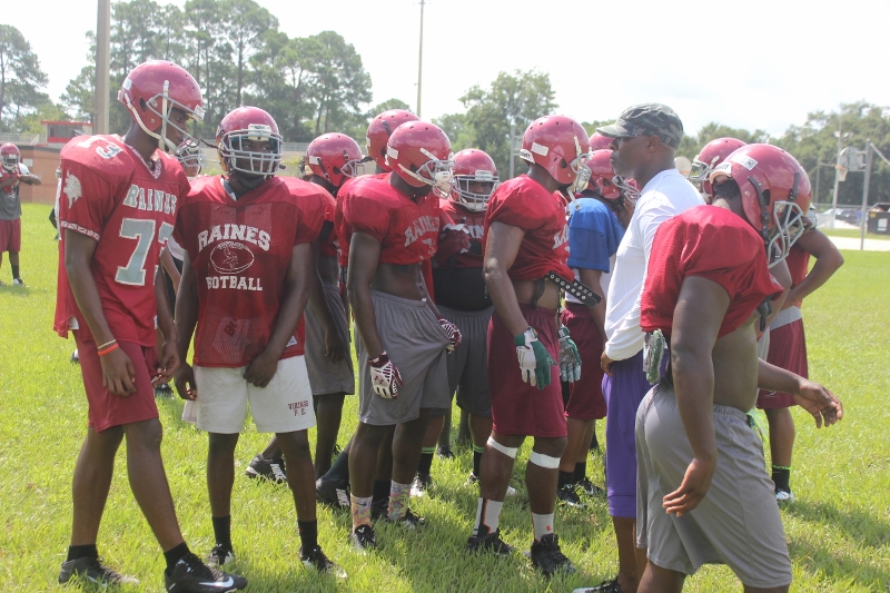 In a visit with head coach Deran Wiley and the Raines Vikings football team this preseason, a few things that stood out to me was the amount of talent that coach Wiley had at his disposal, the extremely high competitive atmosphere and intensity, the Vikings had and put into each drill, and scrimmage. I also noticed the extra hard work,and commitment the Vikings had to getting better by alot of the seniors. Players like QB Augie Debeasi, and defensive backs Bishop Bonnett, DaJuan Jackson,William Westbrook ,Malik Goodman all stayed at least an hour after practice working on their assignments, technique and getting extra reps in. As the Vikings look to make yet another deep run into the Florida state playoffs and possibly win it all, coach Wiley told me leadership and effort like that from his seniors will be key in doing so. Some of the team strengths for this 2015 edition of the Vikings will be the overall experience of the team, fast and aggressive play on defense, the talent in its receiving core and the play from both lines.