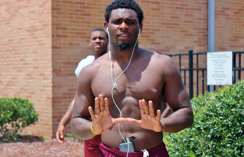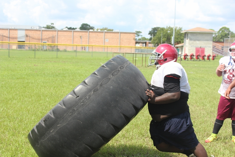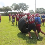 The Vikings will return 7 starters on offense and will be led by its big guy up front 6’4 350 pound Tackle Solomon Kindly. OLine coach Scarlett told me some of Solomon’s good attributes are his footwork, he’s powerful benching over 350,and he’s very athletic. Solomon has over 20 d1 offers from such colleges as UF,UM,UGA,FSU and Louisville to name a few. Coach Scarlett said Kindly will anchor a line that will be very physical, has 3 other seniors on it and can possibly go 8 or 9 deep.