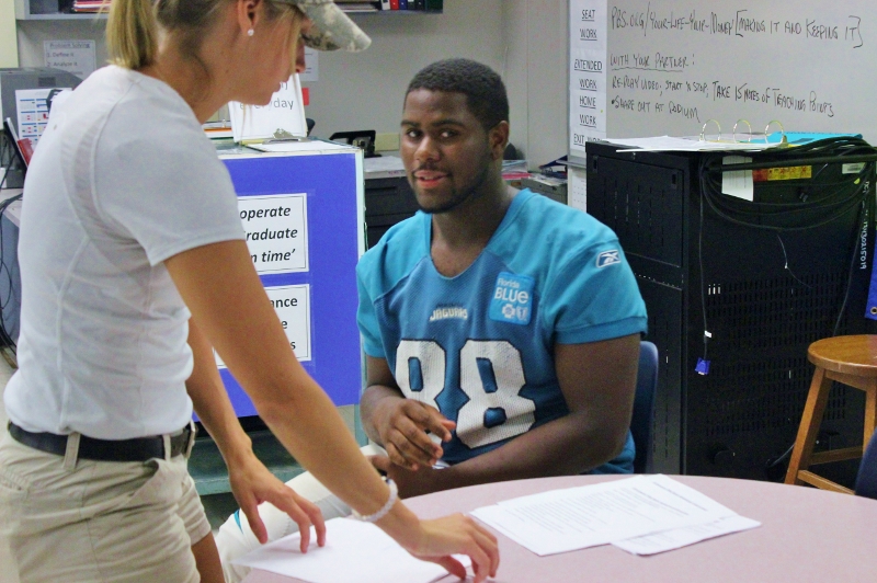 The ultimate goal for the 2015 Trojans is to hoist a 5a Florida state title trophy at years end. To do that the Trojans must win the battle of attrition.To keep his team healthy and on point Coach Flynn is making his team lift weights properly, eat right and undergo county mandated baseline concussion test. Athletic trainer Melissa Angel will oversee such testing during practices and in the game. Angel told me its not just for football, its for all players and coaches of any sport male and female,and that such test are needed to protect the players from such a serious injury. Parts of the test consist of a visual memory, symbol digital coloring matching for 2 minutes among others.
