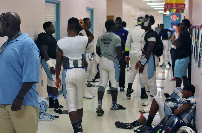 In a visit with head coach Anthony Flynn and the Ribault Trojans, it was easy to tell that the Trojans are cooking up something special for the 2015 football season. The Trojans seemed very eager,and ready to hit and put of points against another team,being that their the only Jacksonville area team to see no preseason action. In the wake of a cancelled preseason game againt the Providence Stallions the Trojans turn their focus towards a 2x state champion (2002 6a, 2011 5a) in Miami’s Norlands Vikings. To deal with the anxiety of competition the coach Flynn is turning up the dial in practice,one of his assistance coaches said this may be the most physical week of practice this year.Coach Flynn is also stressing the importance of detail,being smart,and making next level type plays. Coach Flynn will rely heavily on his senior ace Derius McGoogin to lead the Trojans not only against Norlands saturday but to a much awaited florida state playoff bid.Coach