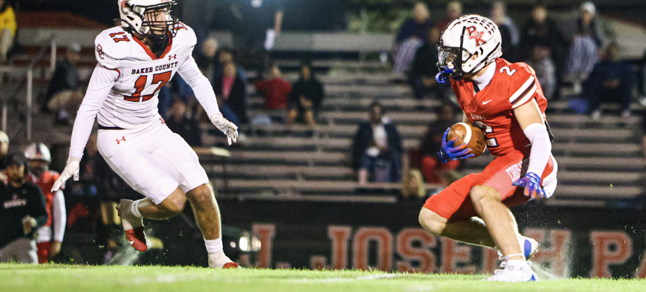 Jacksonville Fl- The Bishop Kenny Crusaders delivered an electrifying performance against the Baker County Wildcats in the first round of the 3A playoffs, securing a 42-21 victory that showcased their offensive firepower and defensive prowess. The Wildcats struck first with a determined five-yard touchdown run by Ke’nais Williams, taking an early 7-0 lead. However, it didn’t take long for the Crusaders to respond and set the tone for the rest...Read More