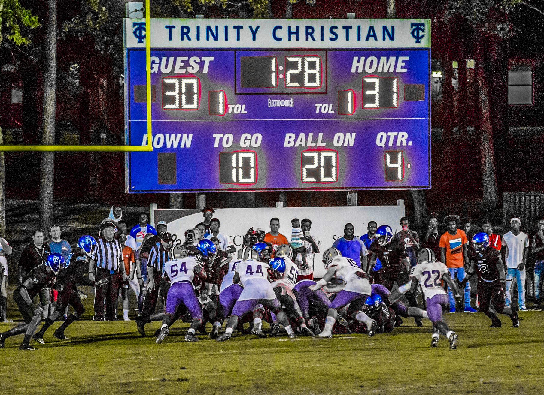 Jacksonville FL- “Wide Right!” yelled the Conqueror faithful behind the North end zone at Trinity Christian Friday night, after Bolles kicker Santi Leon pulled his potential game winning field goal just right of the uprights. Reminiscent of the epic Florida State versus Miami college football thrillers, Bolles versus Trinity II certainly lived up to the avidity to...Read More