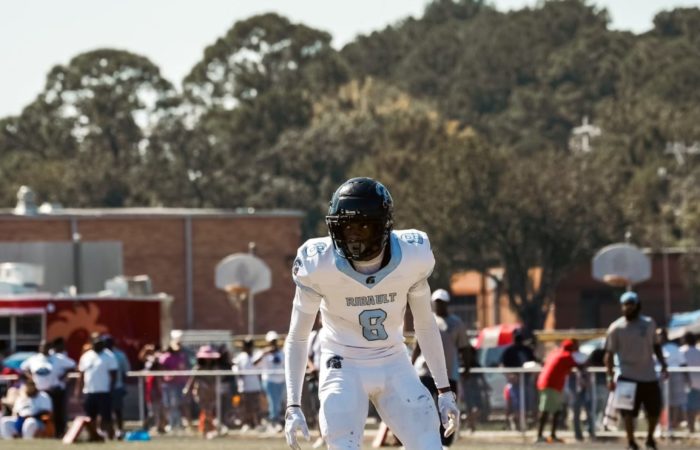 Ande King is a 6’1, 185 pound class of 2023 safety attending Ribault High School. Starting the last two years, King comes into his senior year experienced and ready to make even more plays than the incredbile ones he made as a junior. He’s the only player in Northeasst Florida to return a field goal attempt for a touchdown in 2021. He’s an extremely versitile player, rotating at free safety, nickle, and even linebacker in different defensive formations. With 104 tackles, 2 interceptions (pick 6), 1 sack, and 2 forced fumbles his senior year, King is an intelligent, energtic and opportunistic playmaker on the field who is ready to play at the next level.King signed with Edward Waters University this summer.