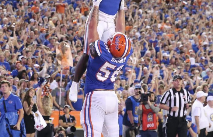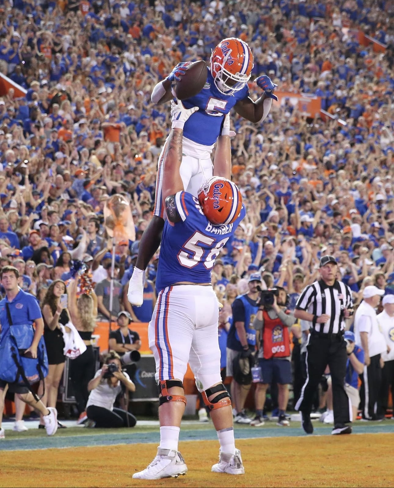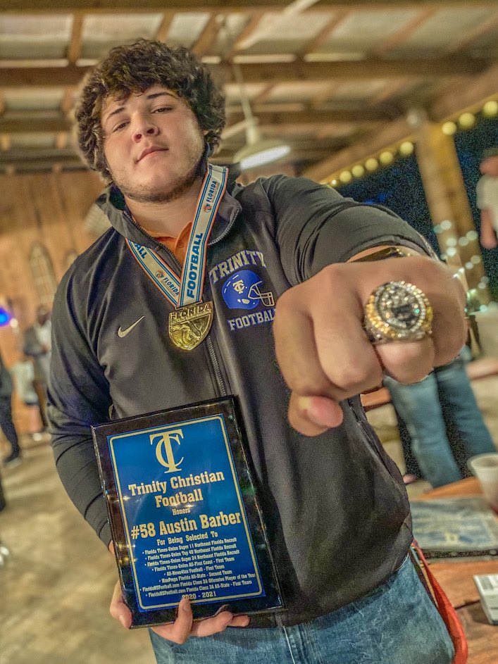 The best offensive-lineman in the state of Florida coming out of High School, Barber a 6’7, 318 pounds of pure aggression who pancaked defenders routinely. Also played defense and special teams showing freakish athletic ability for a young man that size. Six different rushers scored for State Champion Trinity Christian thanks to Barber. Trinity Christian won the Florida Class 3A State Championship in 2020. Under recruited due to Covid pandemic, a late offer by the Gators kept Barber in the area.