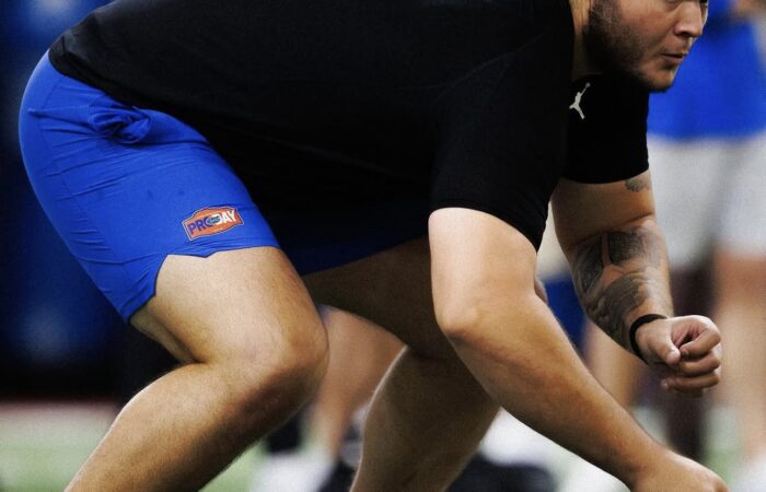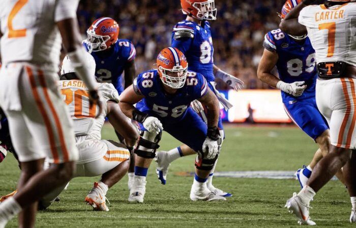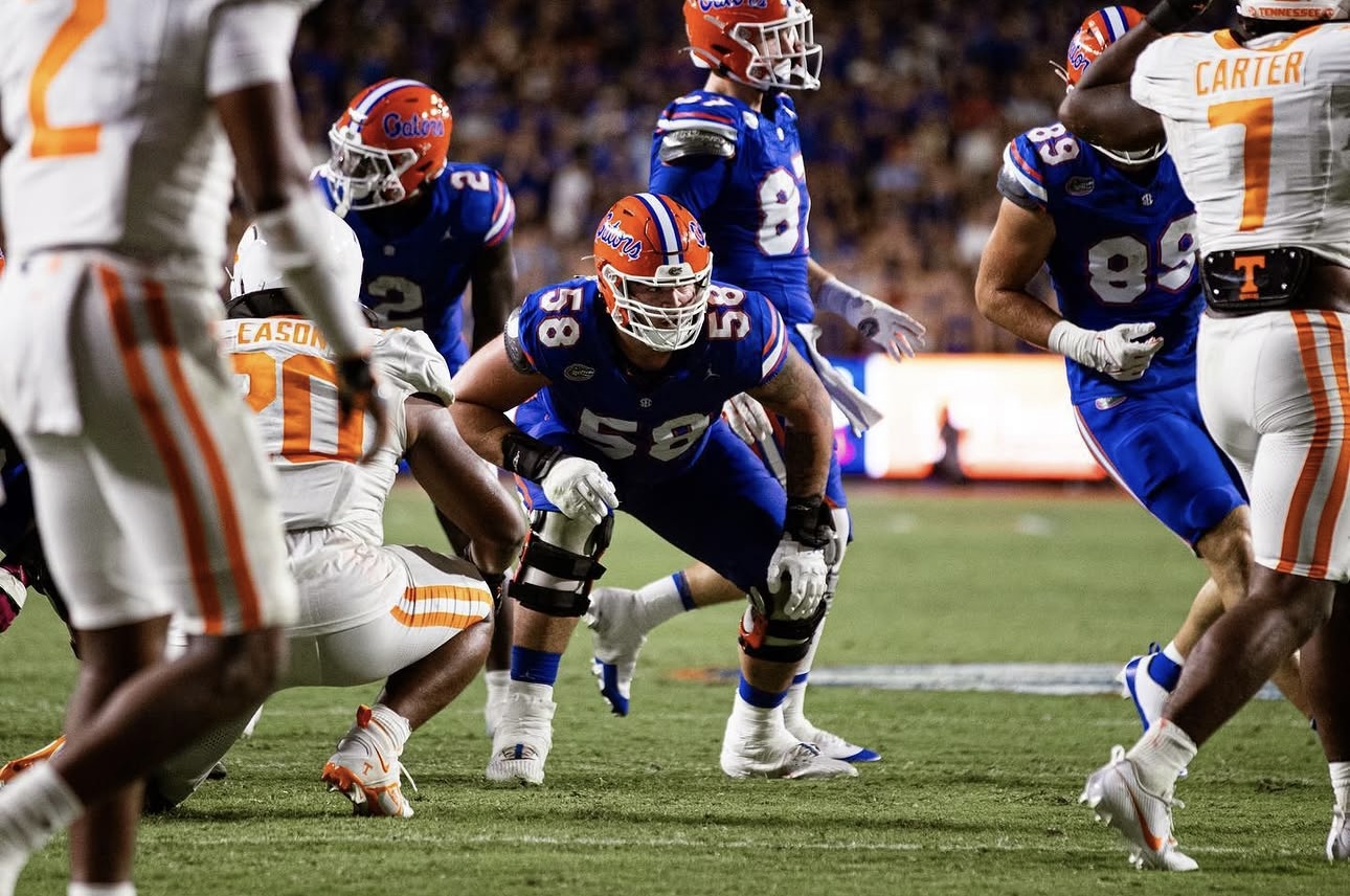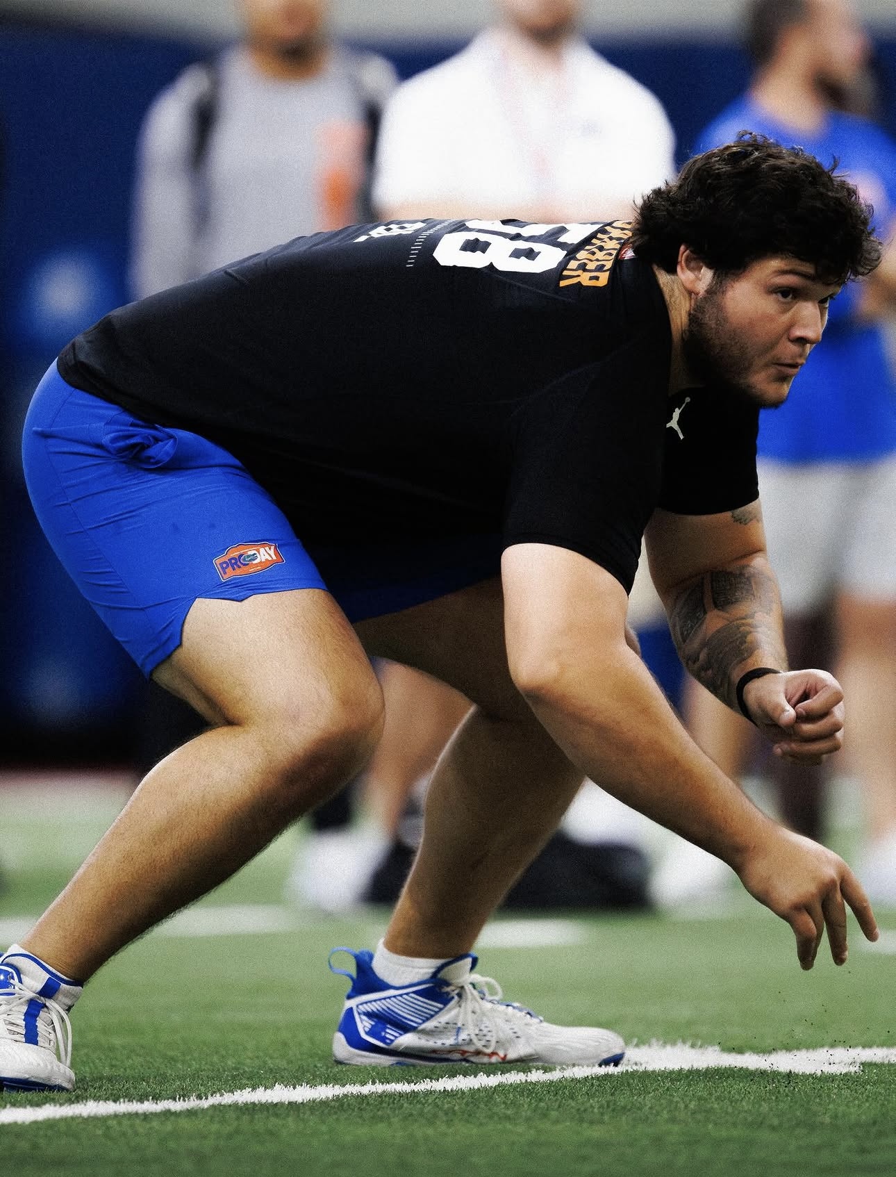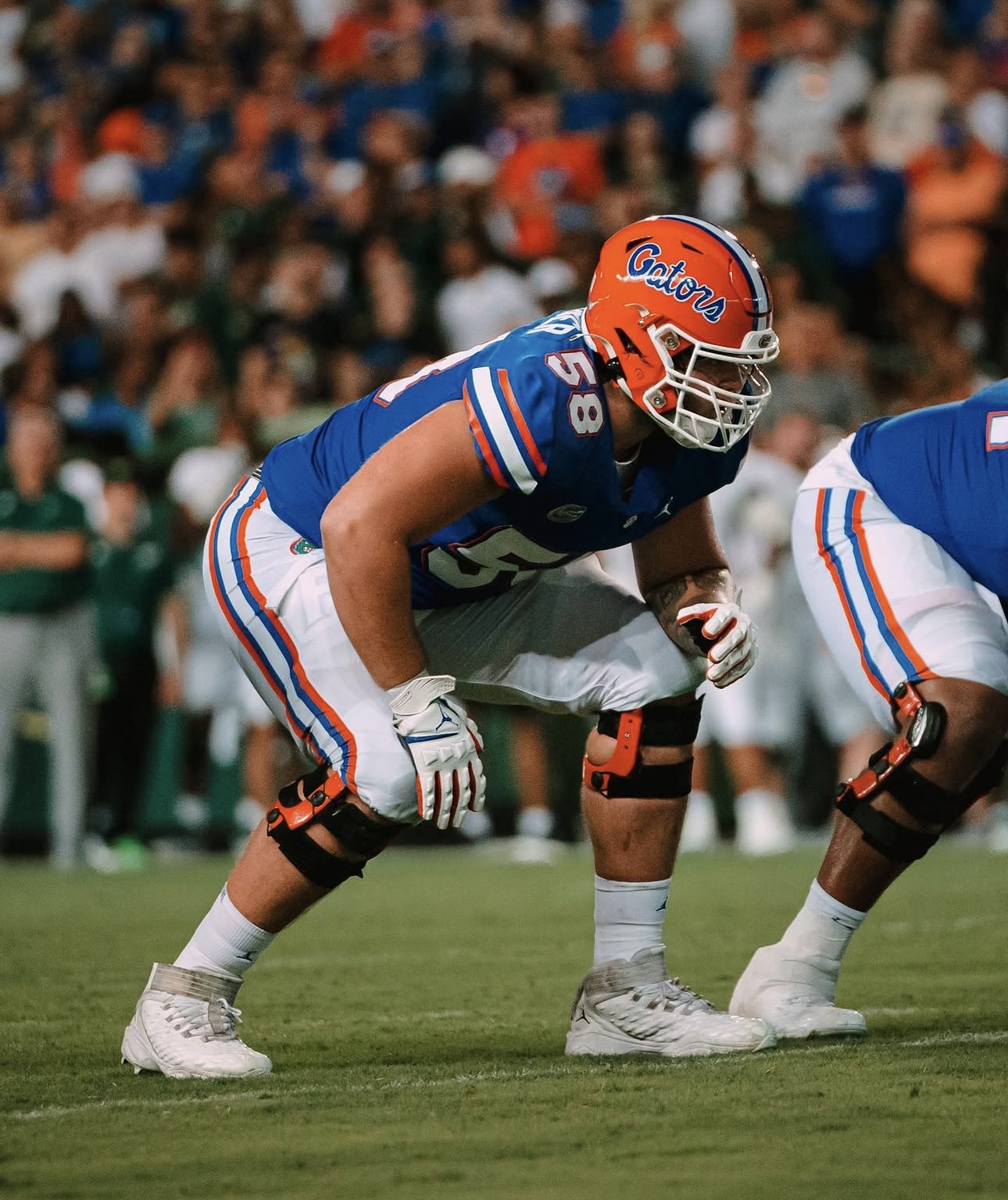 2025: Started all 12 games at left tackle for the Gators… Logged a total of 750 offensive snaps with a PFF run block grade of 82.2.
