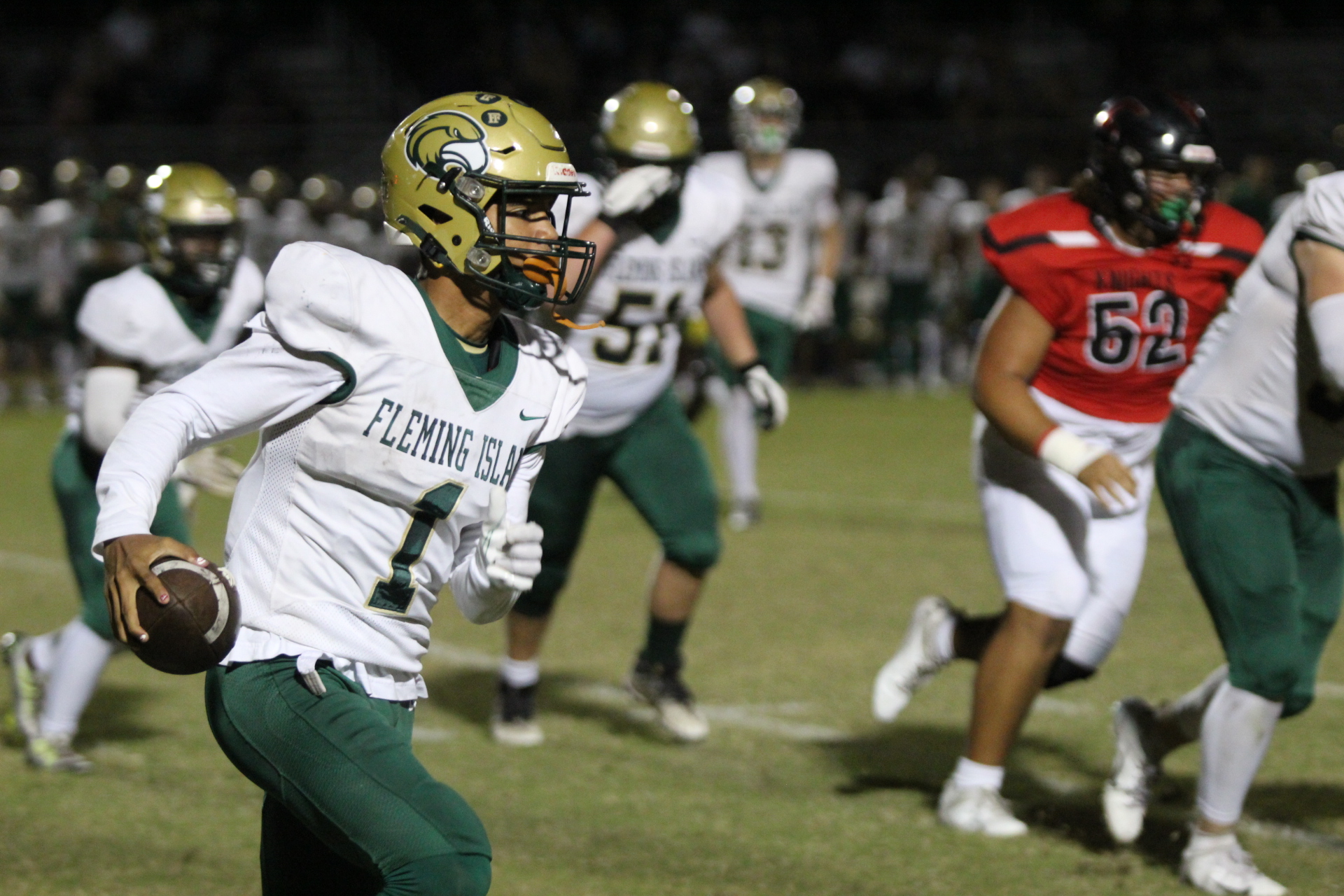 There’s no other quarterback in Northeast Florida that can change an entire game with one single play like Cibastian Broughton of Fleming Island. The 2025 dual threat quarterback can toss a 75-yard pass for a touchdown, or turn a drop back scramble into a 75-yard touchdown run. He’s displayed this several times in high school, including most recently in a week 9 contest against Creekside High School. In that game, Broughton scrambled for an electrifying 75- yard touchdown only to follow that up with a spectacular 75-yard touchdown pass in the same half. Broughton finished the game with 221 yards passing, 5 passing TDs, with 156 yards rushing and 2 TDs. His 7 touchdown performance earned him Duval Sports Player of the Week.
