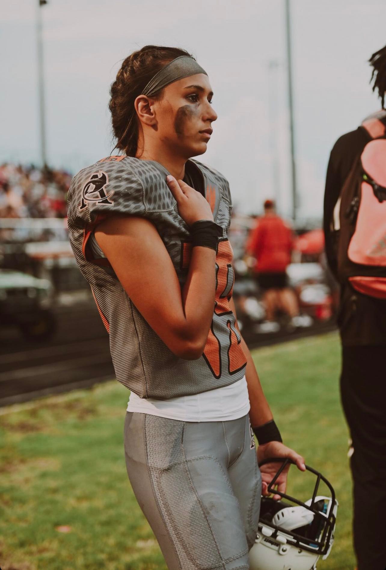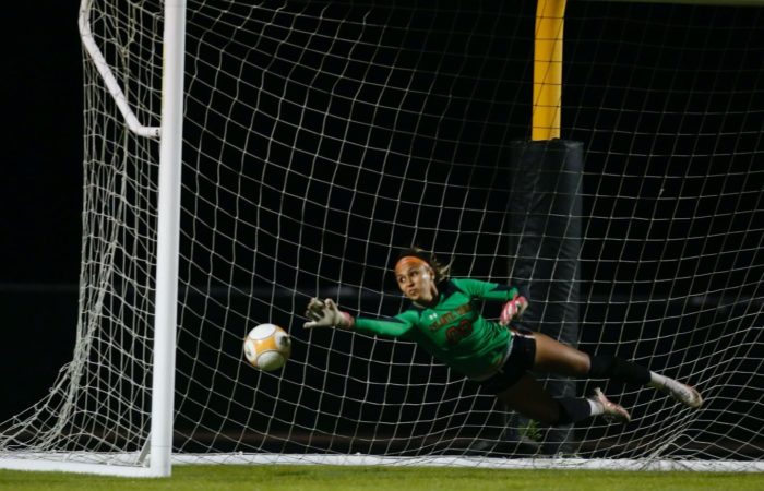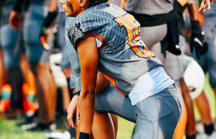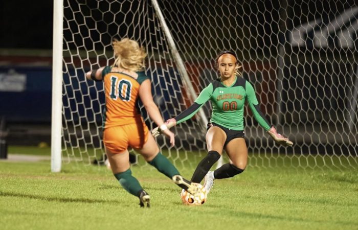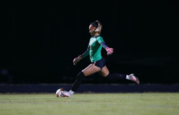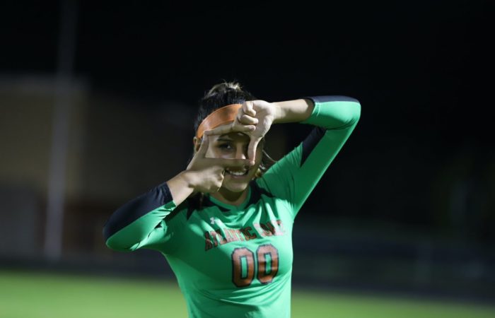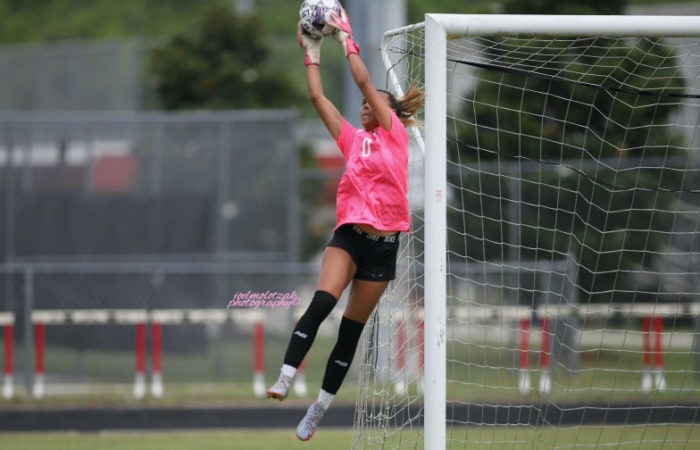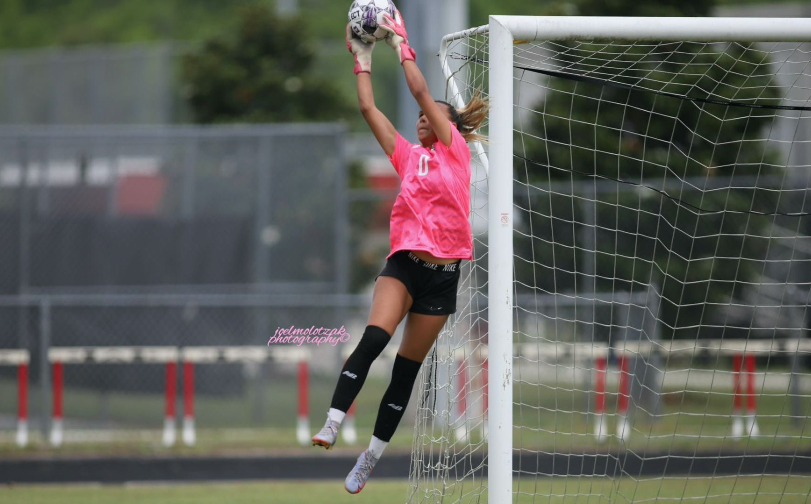 Gabrielle “Gaby” Rourke is a 2024 five sport athlete at Atlantic Coast High School. In addition to excelling primarily as a goal-keeper in soccer, she’s also played softball, is currently a middle blocker in volleyball, plays wide receiver in flag football, and serves as the place kicker in varsity football. There isn’t anything this all around student athlete can’t do, as she is a leader and captain on the court and field. She is the first female athlete to make the varsity football team at Atlantic Coast. A First Team All Gateway Conference selection , and Second Team All First Coast Team selection in 2021-2022, Rourke combines quickness, athleticisim, and power to stand-out as one of the elite at her position. She committed to the University of Kentucky on 10/25/22.