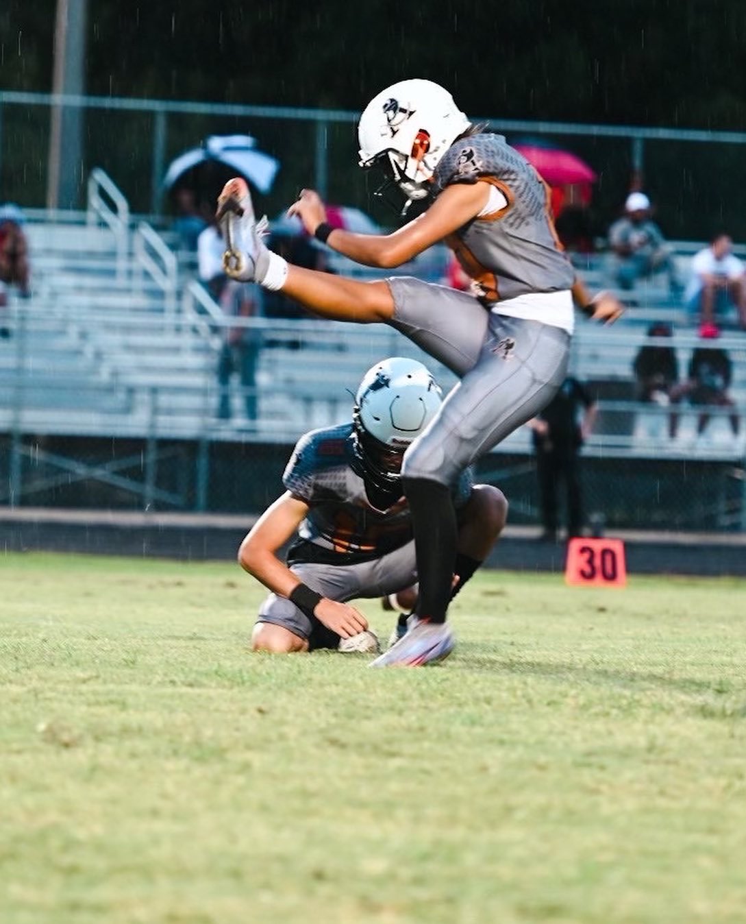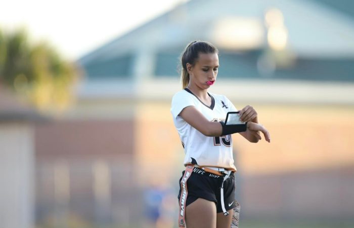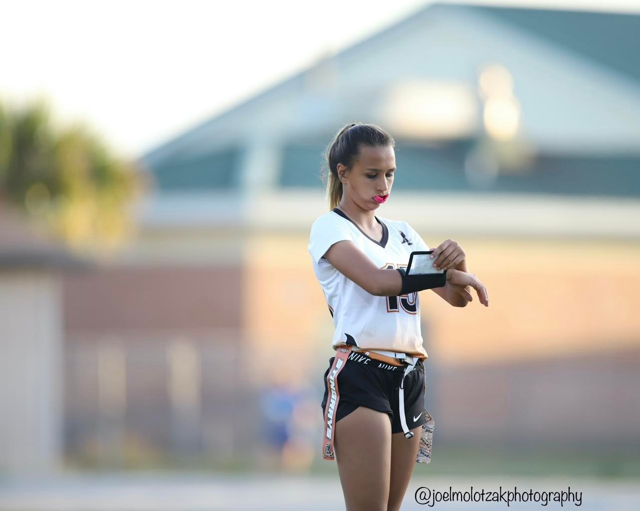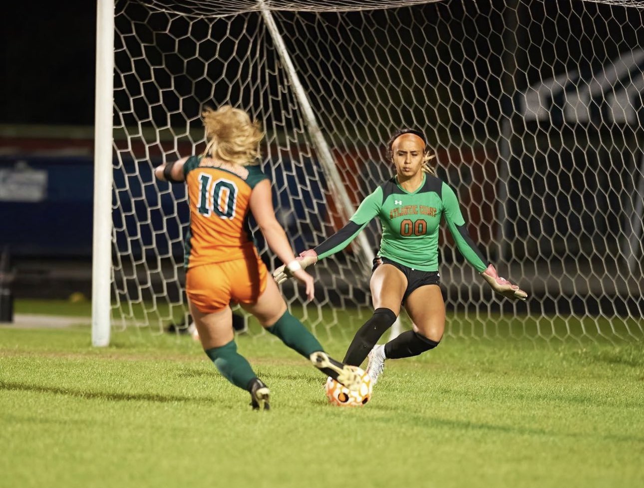 Gabrielle “Gaby” Rourke is a 2024 five sport athlete at Atlantic Coast High School. In addition to excelling primarily as a goal-keeper in soccer, she’s also played softball, is currently a middle blocker in volleyball, plays wide receiver in flag football, and serves as the place kicker in varsity football. There isn’t anything this all around student athlete can’t do, as she is a leader and captain on the court and field. She is the first female athlete to make the varsity football team at Atlantic Coast. A First Team All Gateway Conference selection , and Second Team All First Coast Team selection in 2021-2022, Rourke combines quickness, athleticisim, and power to stand-out as one of the elite at her position. She committed to the University of Kentucky on 10/25/22.