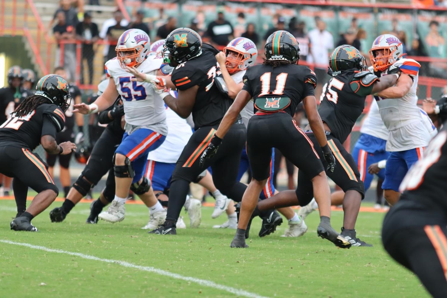 Transferring to Mandarin in 2023, Stubbs in seven games has amassed 45 tackles and 1.5 sacks. His 3 interceptions mid-season has already surpassed previous season marks. Against Fleming Island, Stubbs was named Week #8 Duval Sports Player of the Week, tallying 11 tackles, 2.5 TFLs, 1.5 sacks, and a fumble return for a touchdown. He completely took over the game. Incredibly, with that score, Stubbs has had a defensive touchdown every season of his high school career. And he still has one more year to go. Some of his 28 D-1 offers include Georgia, Michigan, Alabama, Clemson, Florida State, Florida, LSU, Penn State, Miami, and USC.