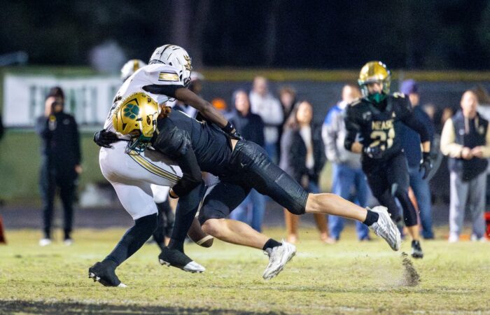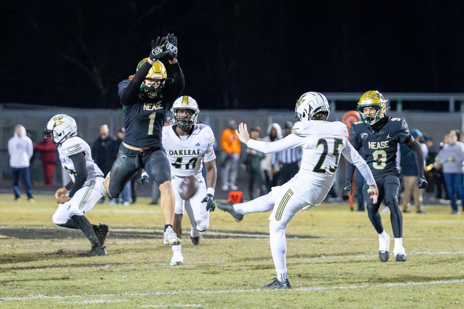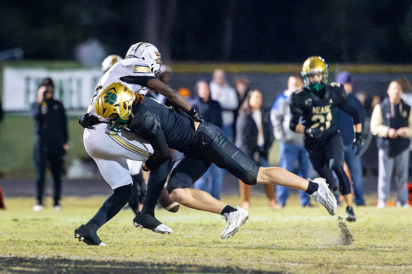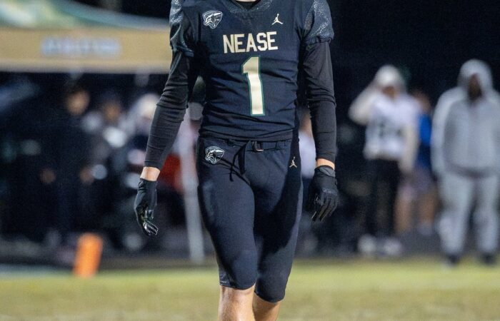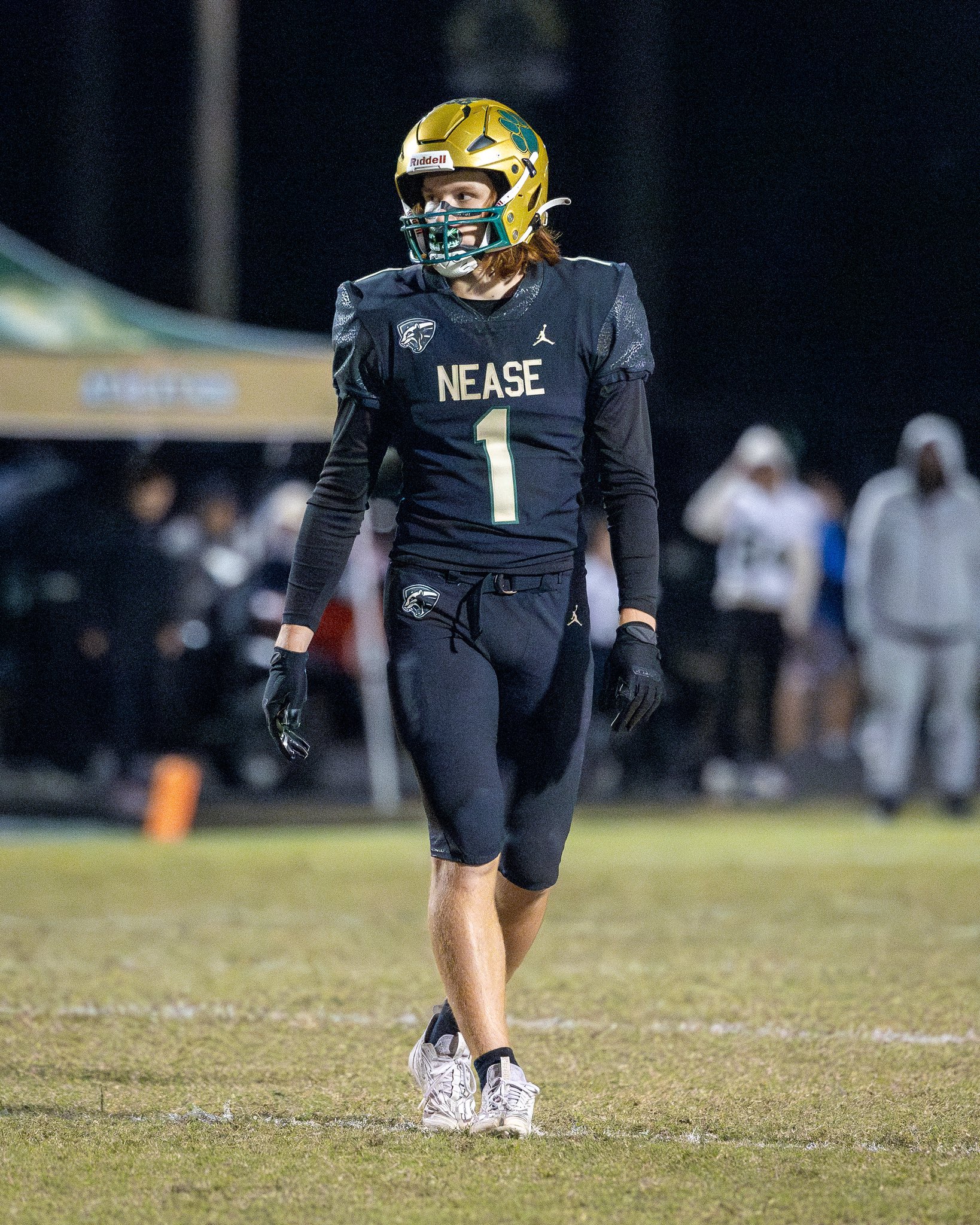 Jacob Curry is a destructive defensive force for the Nease Panthers, combining physicality, instincts, and production. He was named Duval Sports Week 8 Player of the Week following a dominant performance against Bartram Trail High School, where he logged 4 sacks, 15 total tackles, 5 tackles for loss (TFLs), and a pass breakup in a defensive shutdown of the Bears. In that same game, Nease blanked Bartram Trail 10-0, with Curry leading the defensive effort.