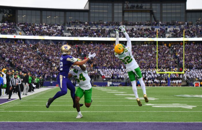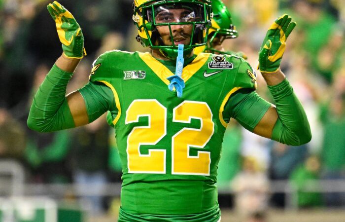 At Oregon, finished with four tackles and forced a fumble in the CFP Semifinal at the Chick-fil-A Peach Bowl. His 88.3 coverage grade, led all cornerbacks in the College Football Playoffs. Oregon’s second-highest graded starting defender by Pro Football Focus, earning an 85.5 overall defensive grade … Also earned an 88.0 coverage grade as one of the nation’s top-graded defenders, and ranking among the top-10 cornerbacks nationally. .