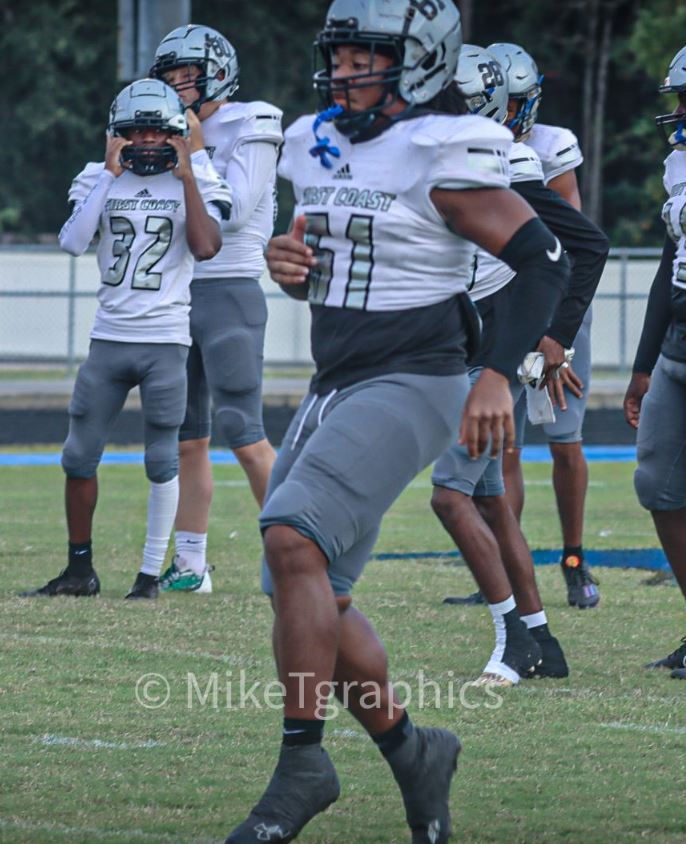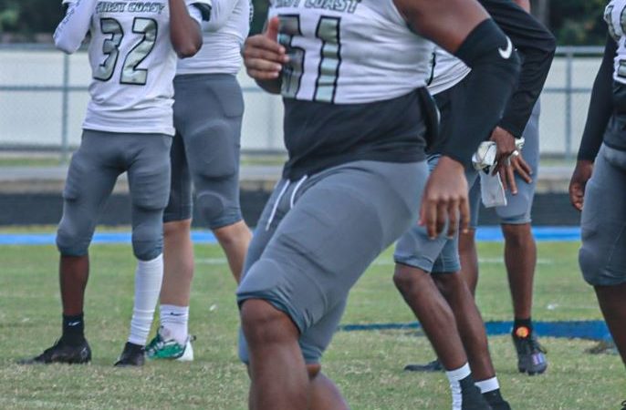 Turn on the tape and watch him work. 2023 offensive lineman Jonathan Pressley out works everyone, playing every position on the line from Center, to Guard, to Tackle. His size also makes him suitable for a FB or LB role at the next level. He’s able to snap the ball quickly and accurately, while engaging defenders with expedience. He has good body control and quickness along with flexibility to wall off defenders. Light on his feet, Pressley is able to change direction, as First Coast frequently runs behind him up the middle and on the edge as he moves to tackle and H-Back as a lead blocker. He’s been a key factor in the Buccaneer’s 2022 playoff season, protecting a quarterback that has averaged nearly 200 passing yards a game, and passed for 1,873 yards and 18 touchdowns.