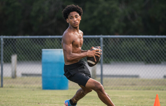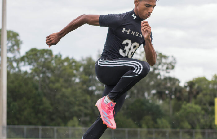 With lightning quick football instincts, Julio Santiago may be the most polished high school football player in Northeast Florida. His development comes from years of playing youth football, to competing in high school as a 3-year varsity starter. Excelling in multiple sports, Santiago couples multiple athletic attributes on the field that gives him decisive advantages against opponents. He uses quickness to beat defenders off the line, speed to separate, and athleticism to make plays on the ball.