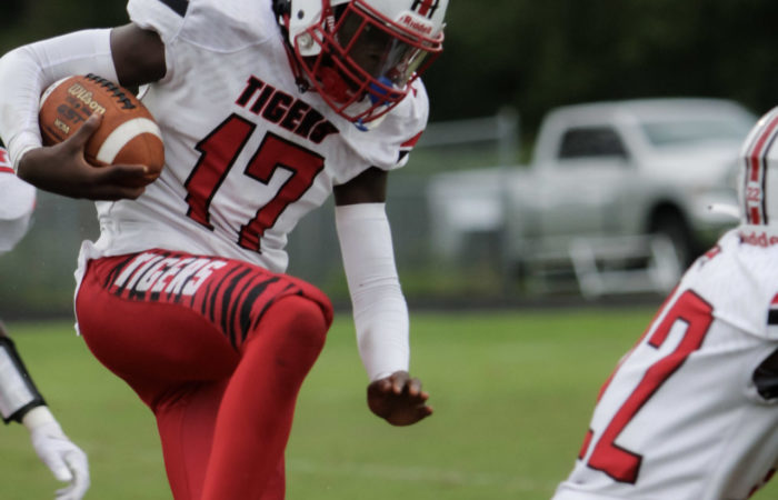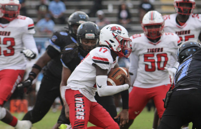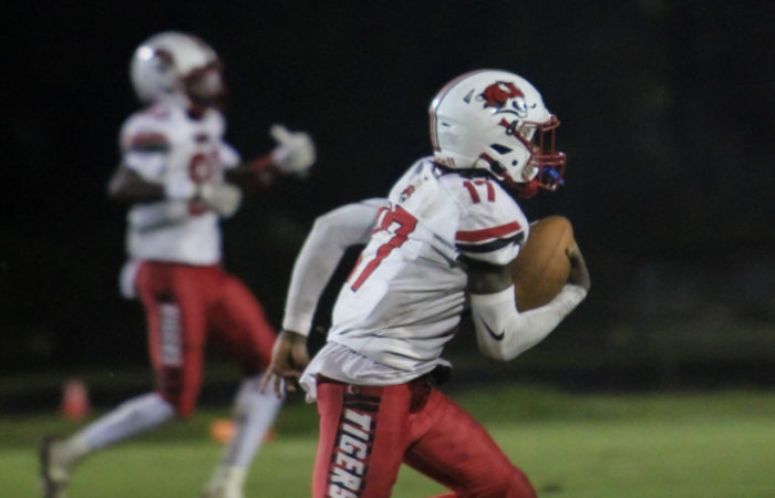 Then with only seconds left in the game tied at 20-20, Johnson would drop back to pass, scamble to his right and fight his way into the endzone for the game winning touchdown, to the eruption of his teammates, cheerleaders and Tiger faithful. Johnson finised that game with 2 touchdown passes, and a touchdown run against Ribault. He tallied 72 yards passing and 150 yards rushing, earning the Duval Sports Week 6 Player Of The Week!