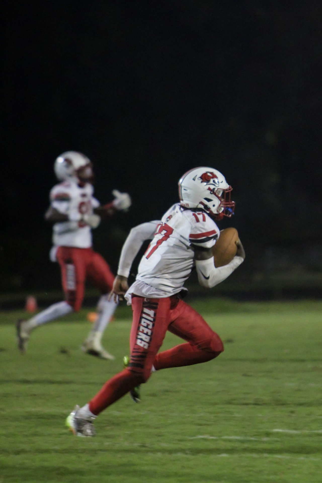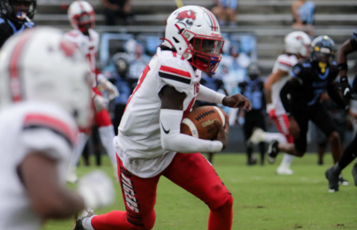 King Johnson put his team on his back in a 2023 week 6 match up against Ribault, as he guided Jackson to a thrilling come from behind victory over the Trojans. Trailing 14-6 in the 3rd quarter, Johnson threw a touchdown pass to Brandon Dew to bring Jackson to within 2- points of Ribault 14-12. Trailing 20-12 in the fourth, he then tossed another touchdown, this time to Tay’vion Lawson to bring the Tigers closer again 20-18. Johnson would showcase his touch. and accuracy throwing a 2-point conversion to Malachi Pierce to tie the score at 20-20 in the fourth quarter.