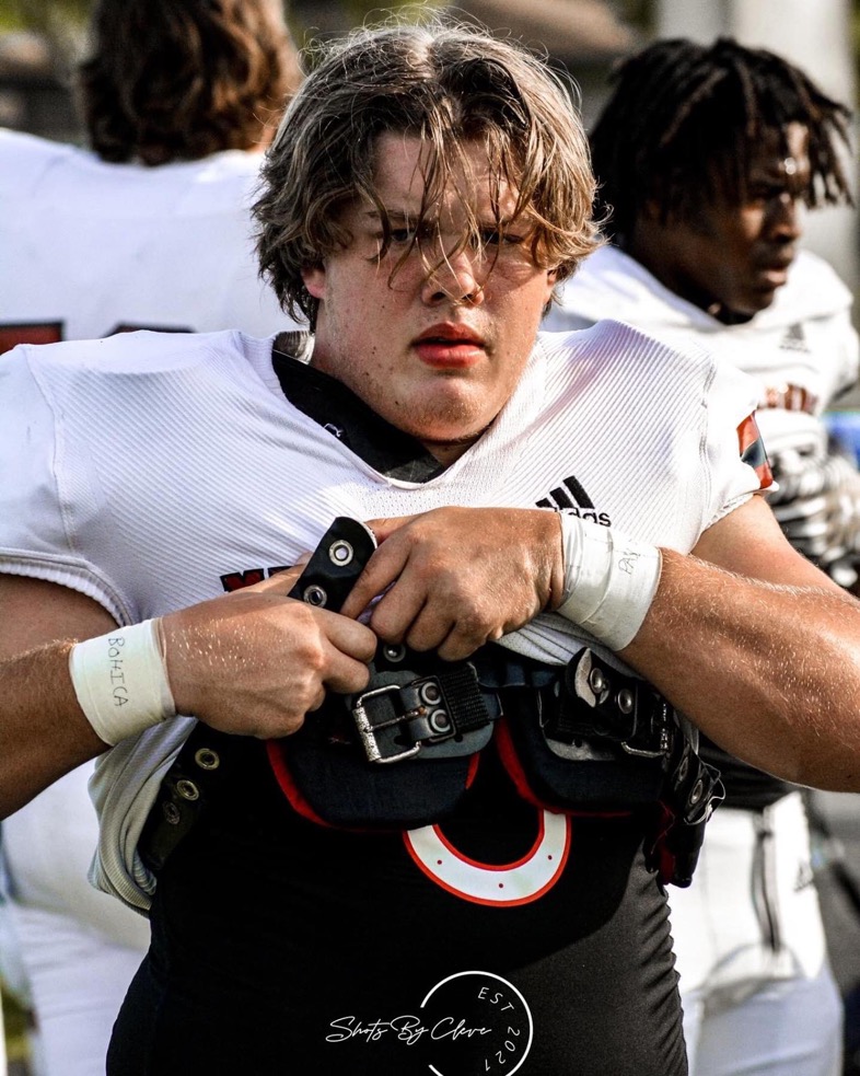 Landen Padgett is an offensive lineman at Middleburg High School, who has started for 2 years. At 6 feet 0, 260 pounds, Padgett has just the right size to be a standout interrior lineman at the next level. His tape proves this as well. Padgett routinley pancakes defenders, and blocks until the whistle. He’s interchangable as well, playing both guard positions and center. He is a key component to the Middleburg rushing attack that produced a 1400 yard rusher in 2021, and a 1,986 yard rusher in TJ Lane in 2022. He is also a 2-way player, plugging holes on defense at tackle. With several collegiate offers rolling in, his senior season has been a showcase for many programs looking to add this bruiser to their roster.
