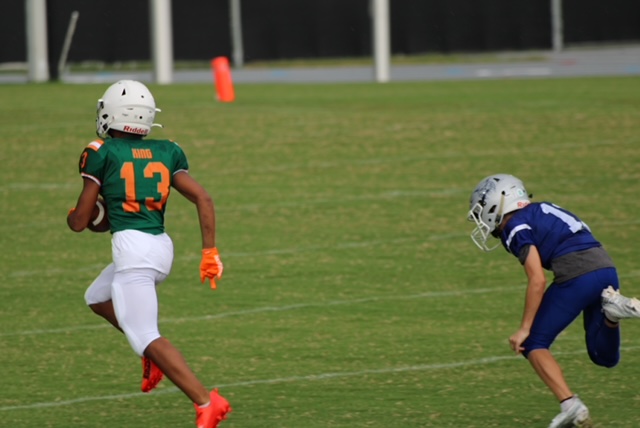 2027 athlete Ny’Kel King is an all around football athlete at Murray Middle School in St. Augustine Fl. Ny’Kel plays Wide Receiver, Running Back, and Safety for the team. His primary position however is WR. He posseses ideal height and length for a receiver at his current level, and is on track to progress to the next level. With exceptional hands, King is a sure-fire target in the passing game for Murray. A dynamic playmaker, King Kel’s throne is on the field, ruling the secondary and over opposing corners!