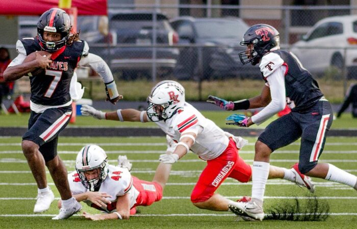 One of the most athletically gifted players Northeast Florida has today is quarterback Tony Kennedy formerly of Terry Parker high school, but now the starting quarterback for First Coast High School. The 6′ foot 2026 signal caller excels at track & field as well and should be on several college recruiting boards. In football, he tears up the competition and racks up the stats. He has 750 passing yards, 6 TDs, combined with 842 rushing yards, and 8 TDs in 6 games.