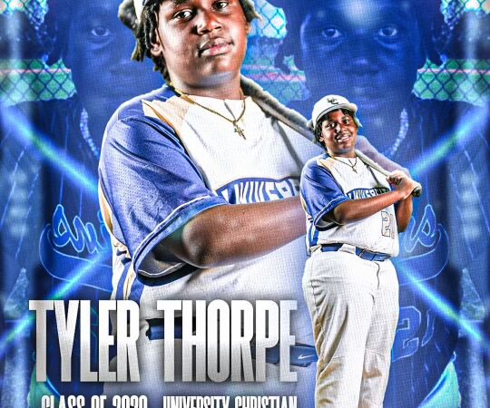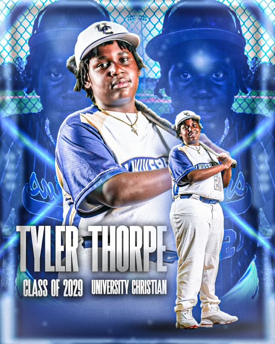 Big Tyler Thorpe is the big engine that drives the University Christian Middle School offensive line at Center and defensive line at Nose Tackle. The talented 8th grader is a multi-sport athlete, excelling in Football and Baseball. On the diamond, Thorpe plays first base. The signature position for a slugger. His raw power as a hitter has translated on the football field as a bulldozing blocker on the offensive line. With long arms and a strong base, Thorpe gets extension while blocking and can control offensive linemen while playing on the defensive line with bull rushes.