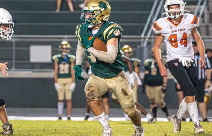 Enrique Ordoñez is a 2027 running back from Nease High School in Ponte Vedra, Florida. The 5’8″, 175 lbs all-purpose back has great vision, toughness, and speed which he’s displayed on the field and on the track. The 2-sport athlete excels in Track and Field as well, where has recorded a time of 11.60 in the 100 meters. He is a break-out back for 2025, as evident by his performance in spring football where he scored 2 touchdowns, including a 45-yard scamper that he took to the house. Head Coach Collin Drafts describes him as a player with “vision, patience, and great balance”. Ordoñez is the next man up.