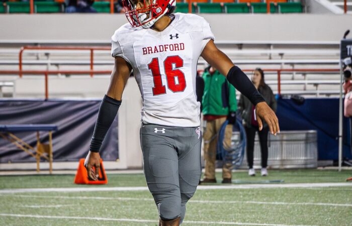 Bradford High School has had some exciting years on the football field thanks to 2025 linebacker Jeremiah McKenzie. The all around athlete plays linebacker on defense, but was called upon to take over quarterback duties the second game of the season in 2022; He exploded! McKenzie passed for 855 yards with 10 touchdowns in a primary rushing offense, finishing with a 119.5 QB rating. The versatile athlete also carried the rock for 549 rushing yards and 12 TDs. Amazingly, the sophomore sensation accounted for 72 points, 1,404 total yards of offense and 22 total touchdowns, helping Bradford advance to the Class 2S State Semifinal.