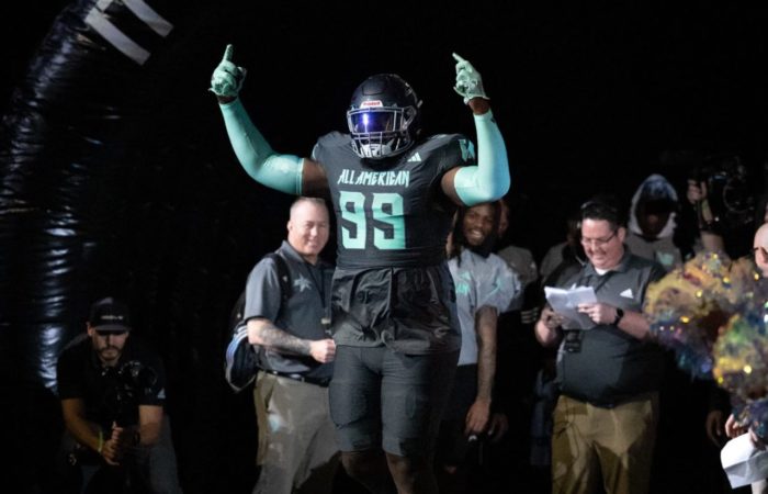Georgia commit Jordan Hall is a charismatic big man whose outgoing personality translates to outstanding plays on the field. He’s quick off the ball, and uses his swim technique superbly. He disrupts the backfield, and closes in on running quarterbacks with his exceptional speed for his massive size.