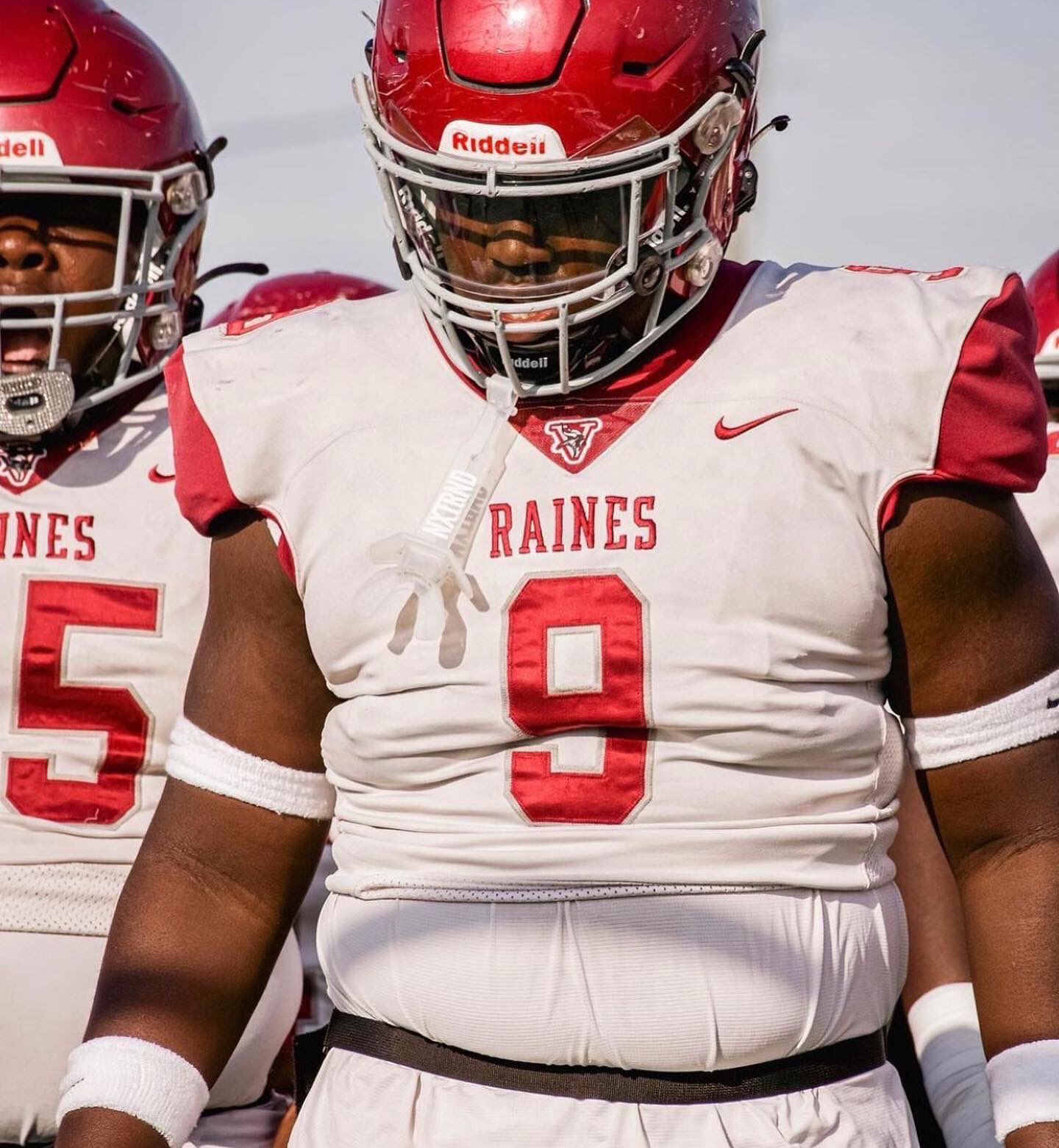 The 2024 season saw the 6’3″ and 282 lb star record 67 tackles—including 33 solo—and notched 11 sacks, ranking among the top 1 in District 3A and top 80 statewide. He was a leader on a historic 13–0 Raines defense that allowed just 14.3 points per game and shut out opponents three times, anchoring the Vikings’ run to the Class 3A state championship game. Simon signed with Rutgers.