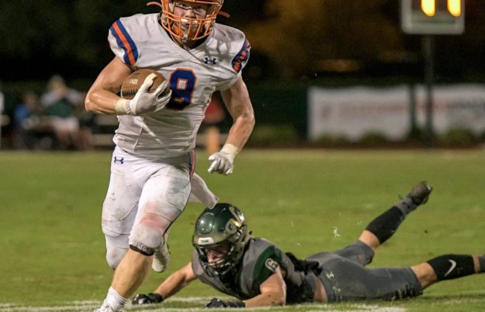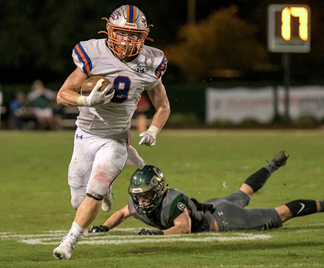 Frew signed to Air Force and had several Ivey league and military academy offers. The only player to score at least 4 touchdowns in consecutive state championship games, Frew left his indelible mark at the historic program. He had an awesome senior year, rushing for 1309 yards and 20 touchdowns in 10 games, leading Bolles to the playoffs once again. He tallied 1,488 all purpose yards as well.