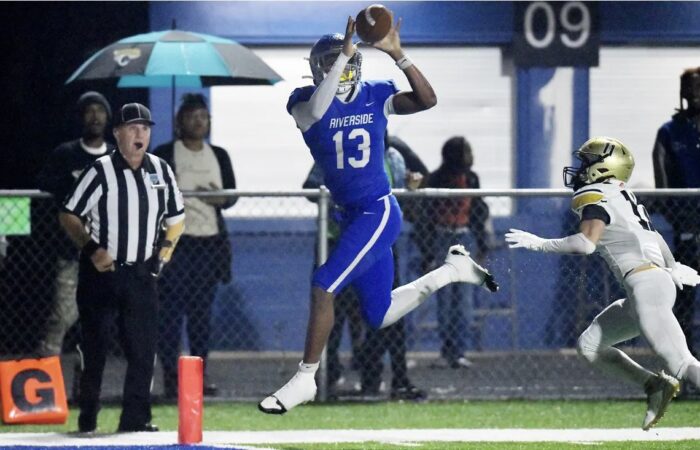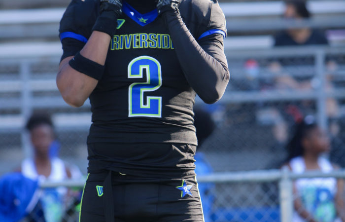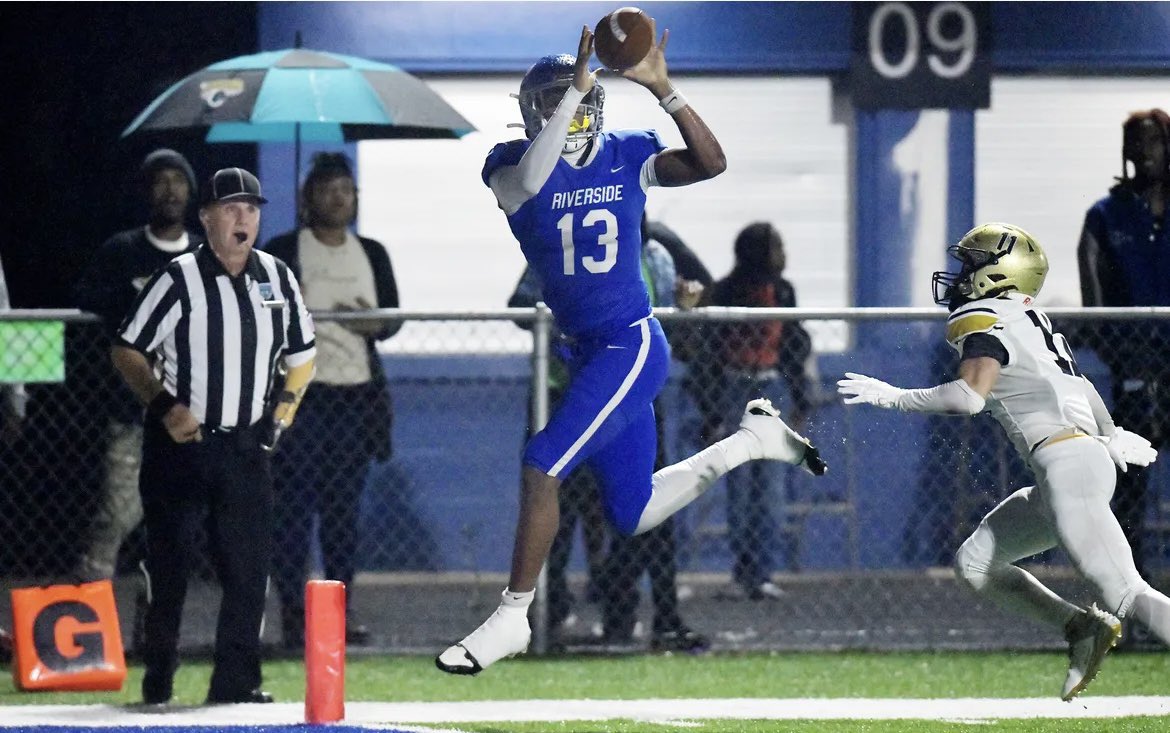 A target you cant miss. An athlete you observe immedietly. A player you know will make a big play every game. Tae’shaun Gelsey of Riverside is the most recognizable football athlete in Northeast Florida. Standing 6 foot 4 inches and weighing 210 pounds, this wide receiver turned tight end easily goes up to catch touchdowns over defenders. In 2023, he amassed 859 yards and 12 TDs to cap a stellar junior season.